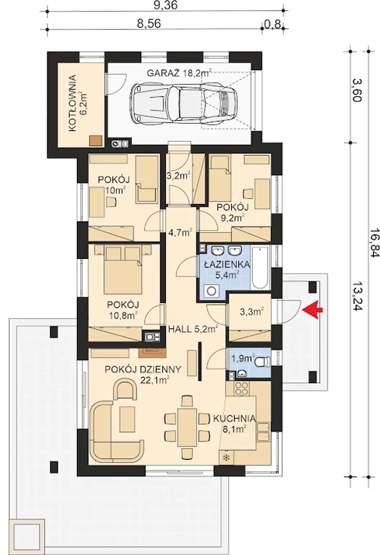 Długość budynku 9.36 m |