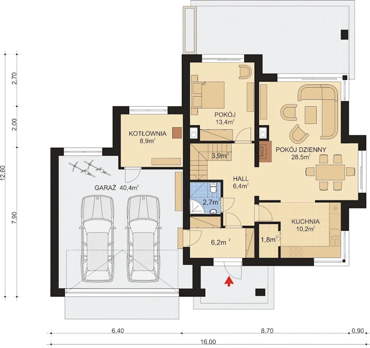 7. Pokój dzienny z jadalnią | 28,50 m² |