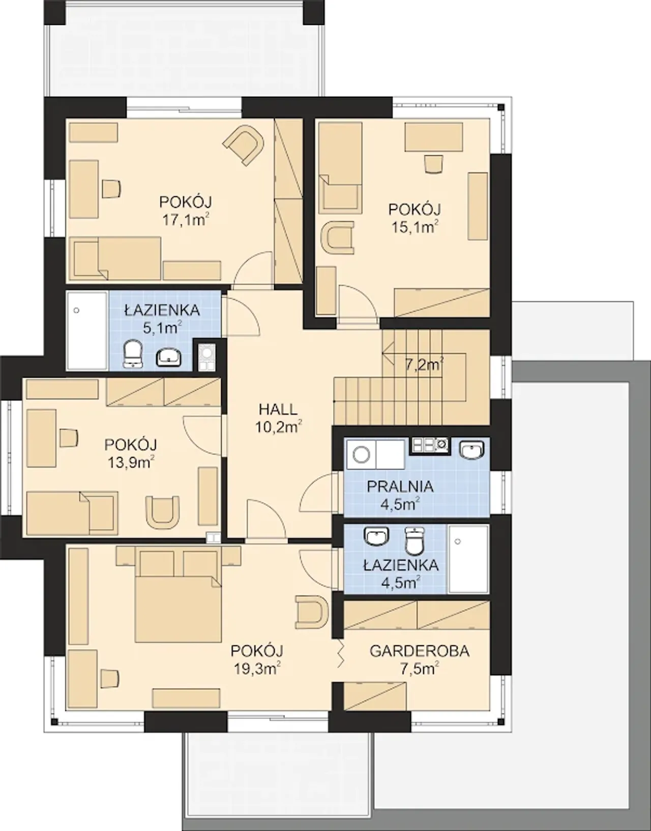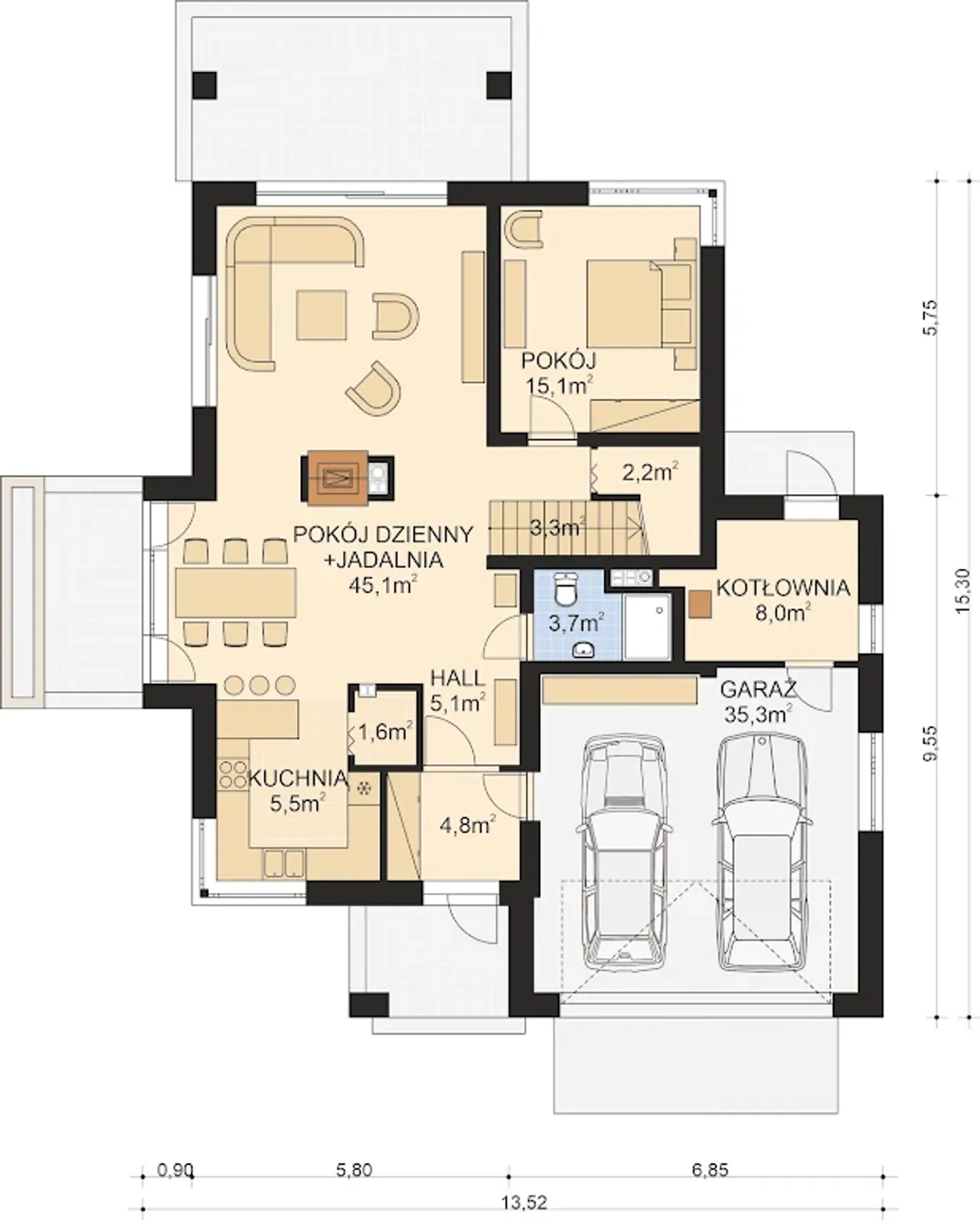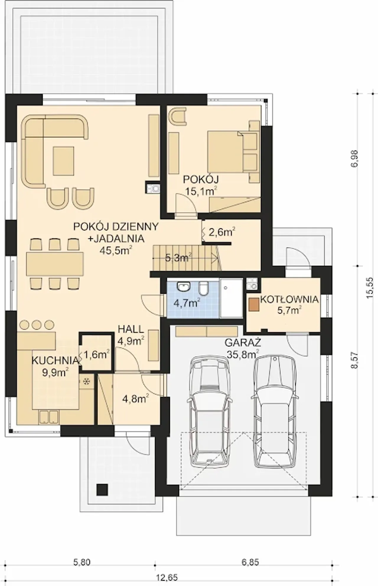 3. Pokój dzienny + jadalnia | 45,10 m² |