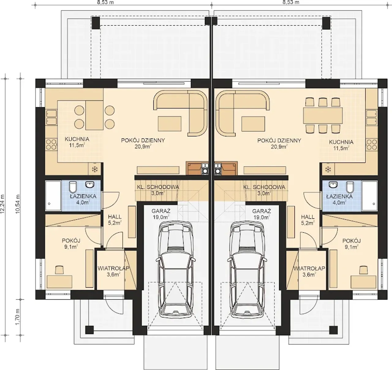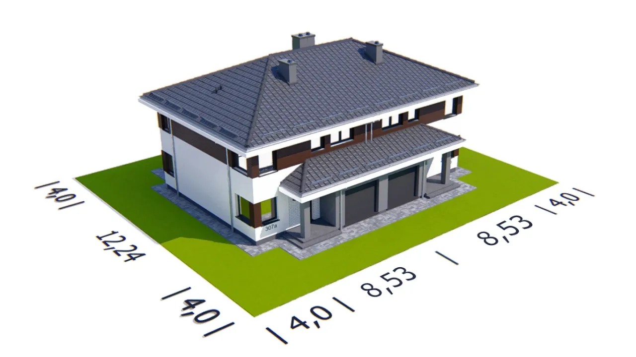Wypełnij formularz i otrzymaj rysunki w pdf z dokładnymi wymiarami budynku i pomieszczeń (długość, szerokość, wysokość) dla projektu APS 307 wariant 3