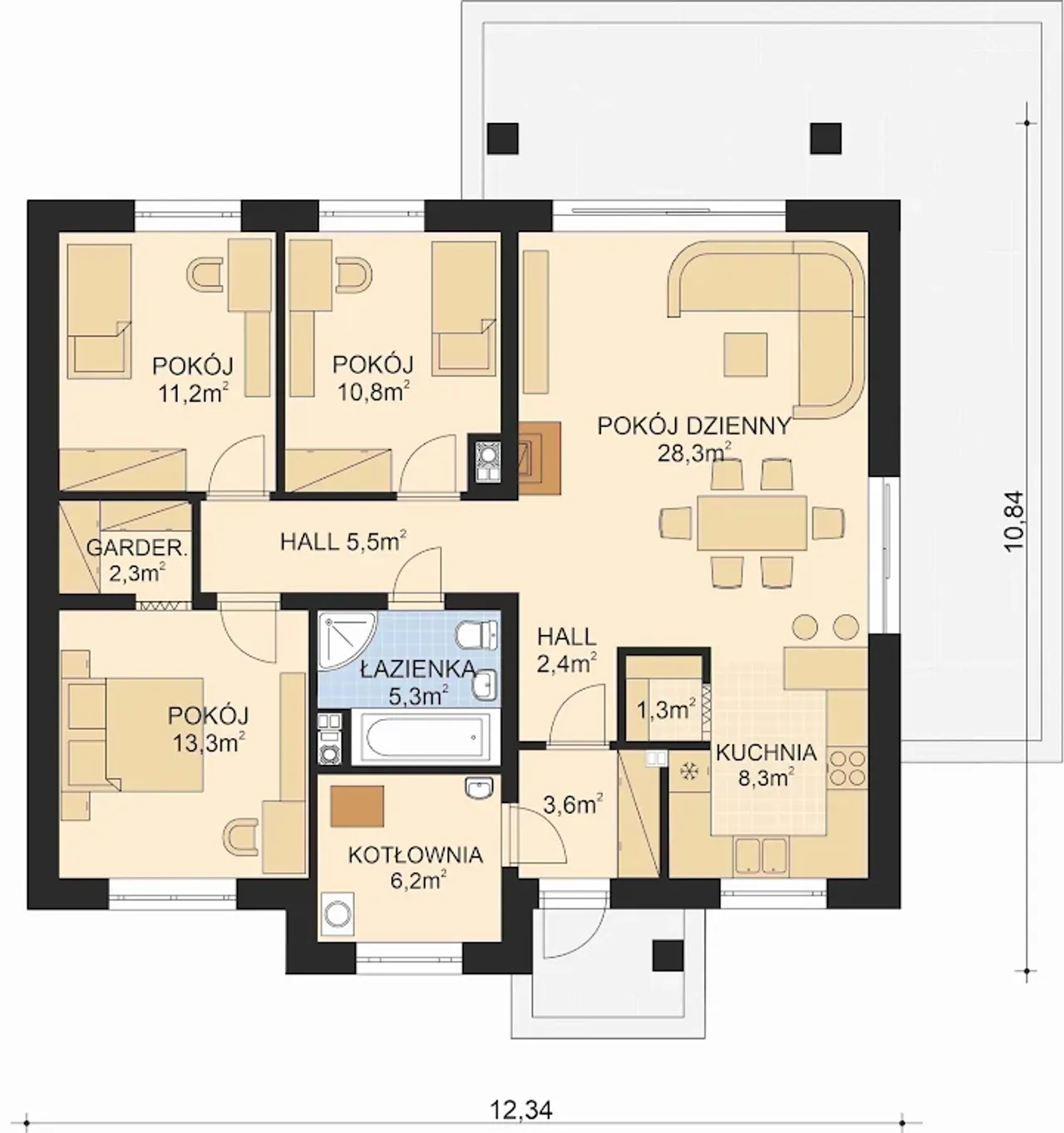 Wypełnij formularz i otrzymaj rysunki w pdf z dokładnymi wymiarami budynku i pomieszczeń (długość, szerokość, wysokość) dla projektu APS 332 wariant 3