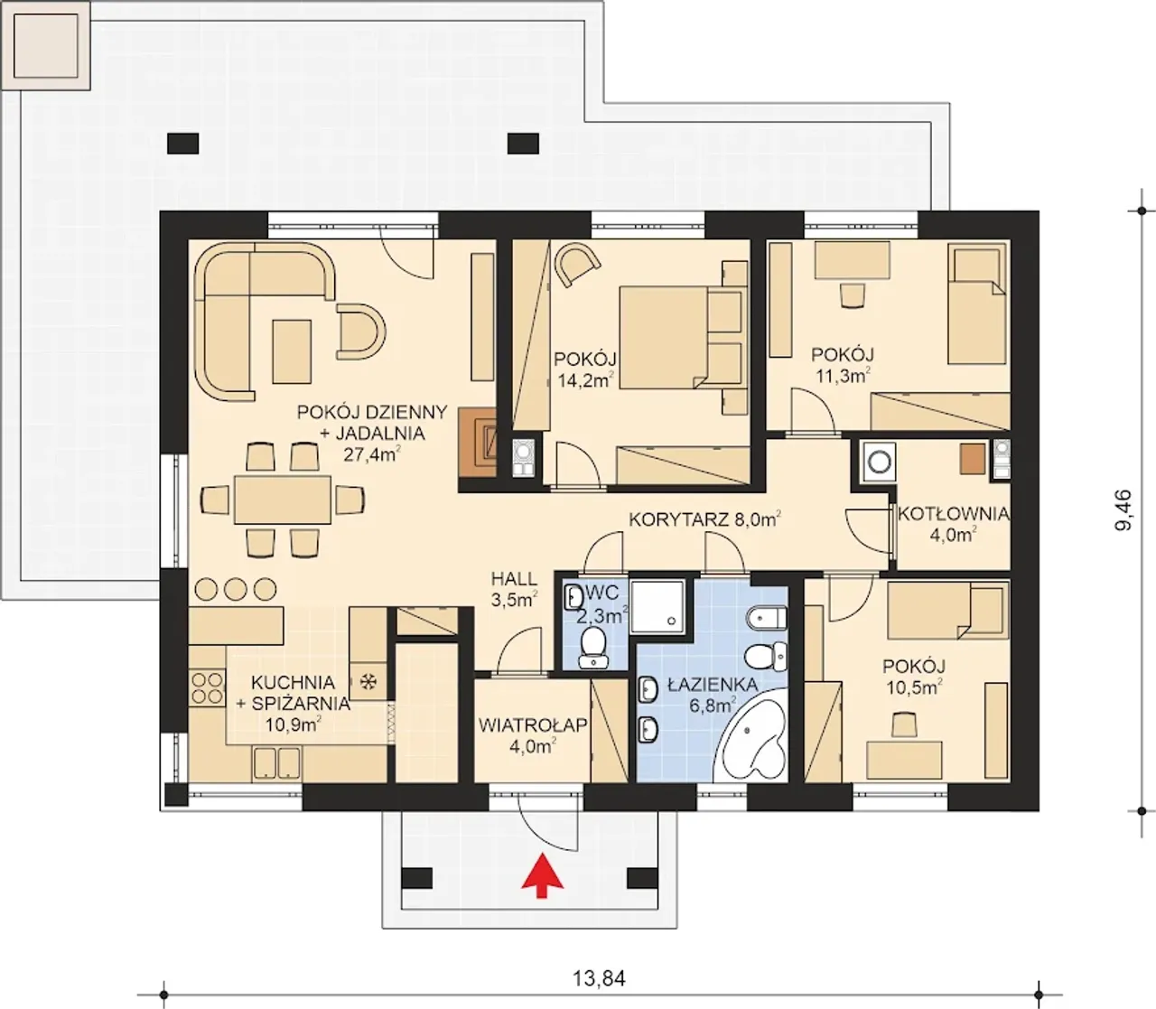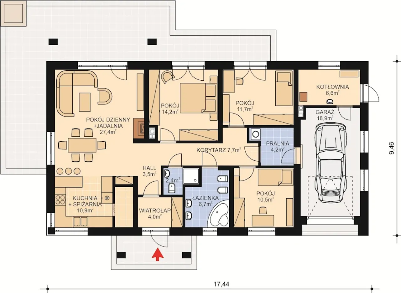 | Długość budynku 9.46 m |