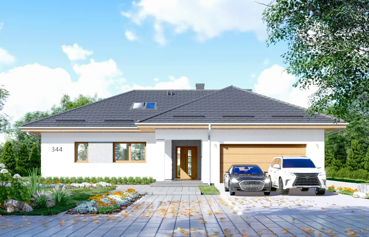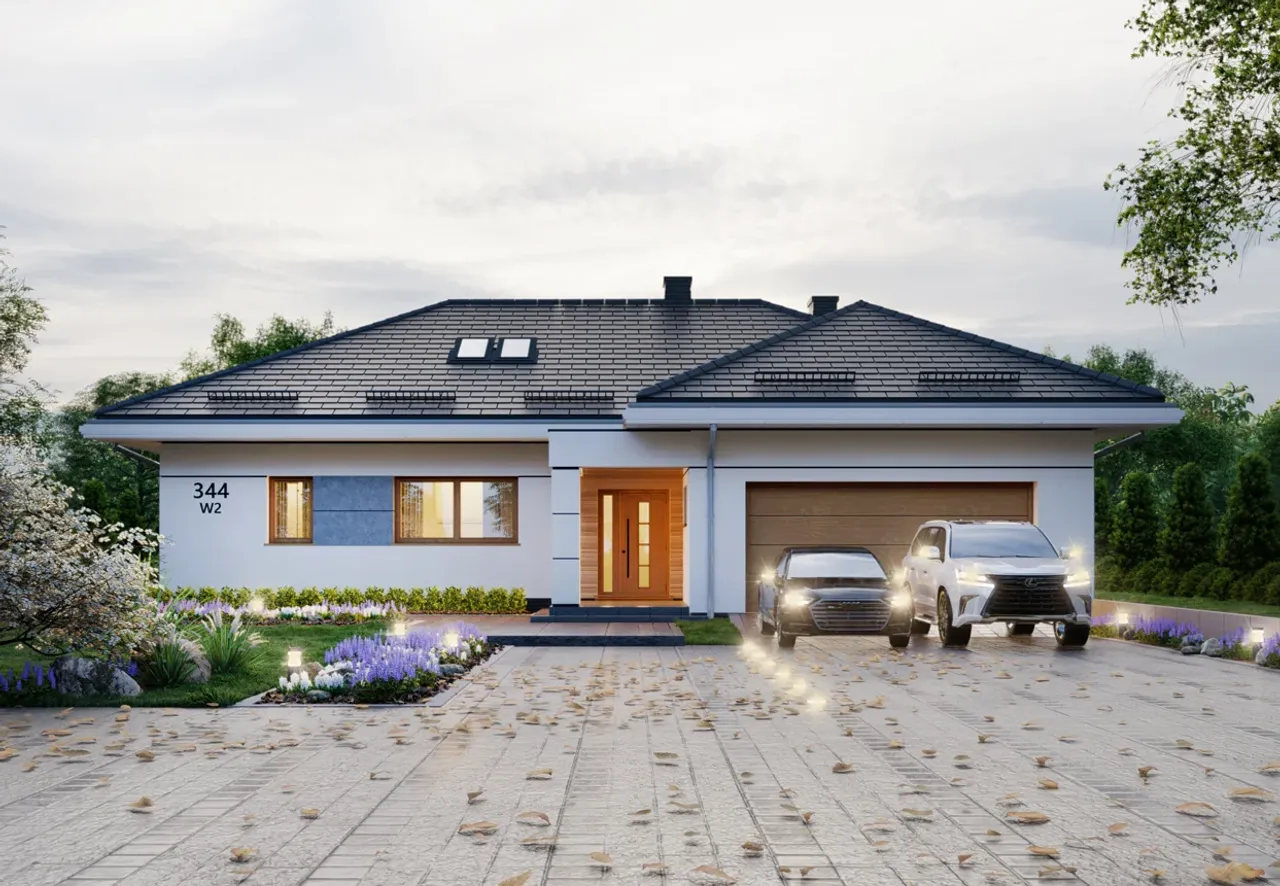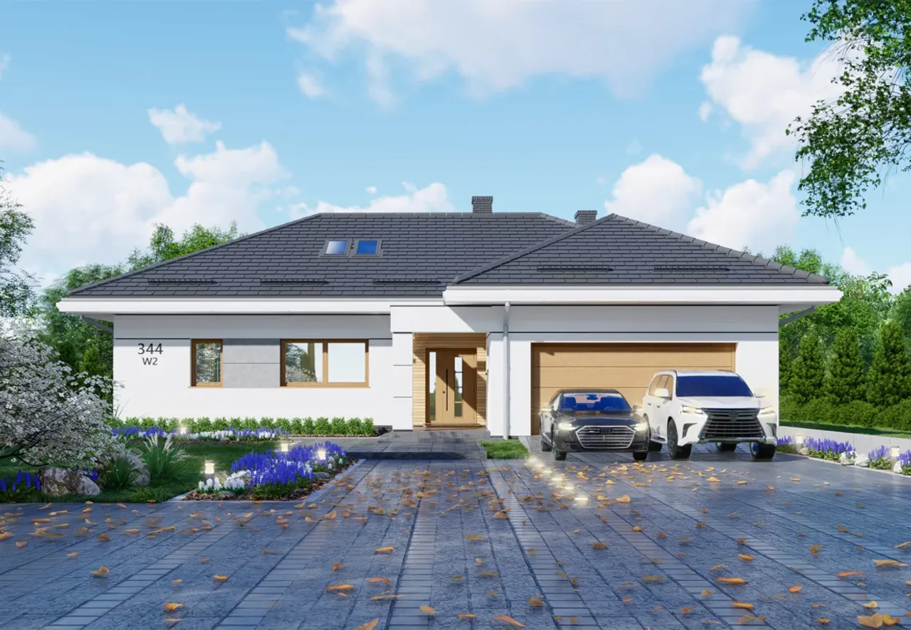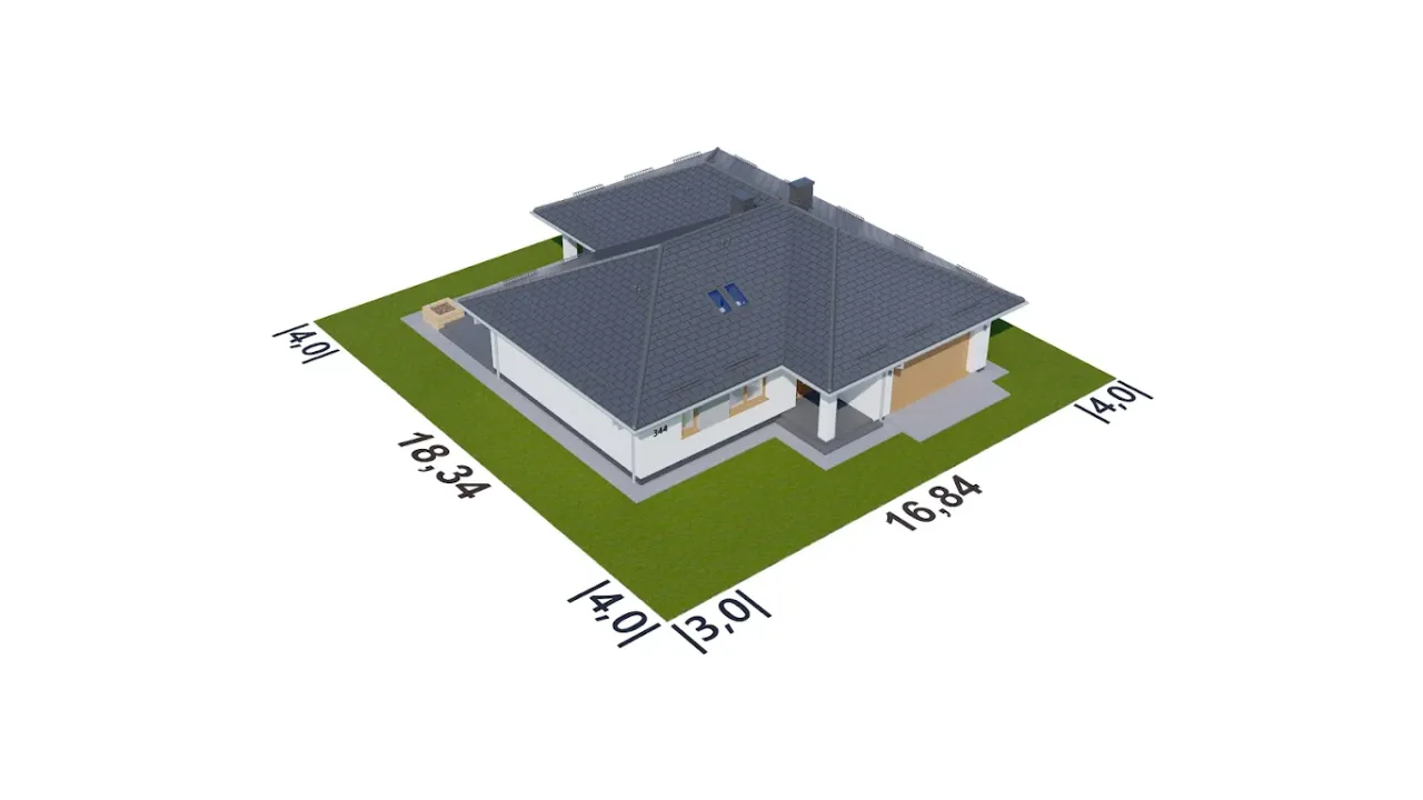 Wypełnij formularz i otrzymaj rysunki w pdf z dokładnymi wymiarami budynku i pomieszczeń (długość, szerokość, wysokość) dla projektu APS 344 wariant 2