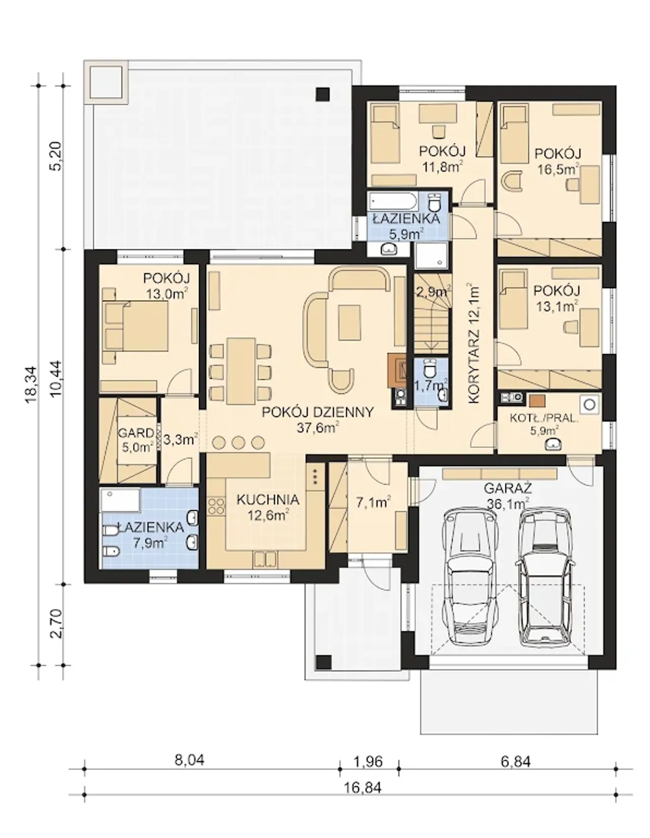 5. Pokój dzienny z jadalnią | 37,60 m² |