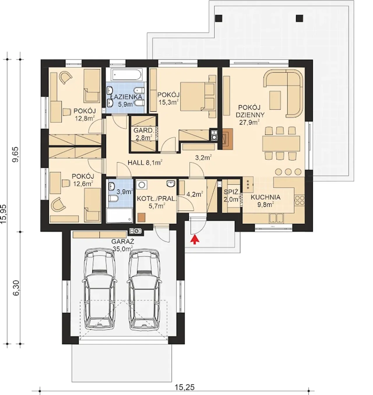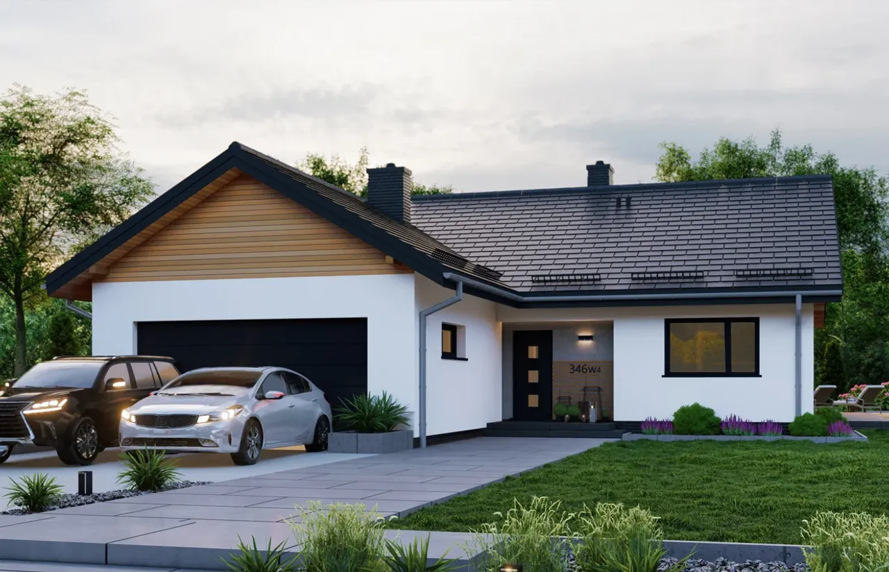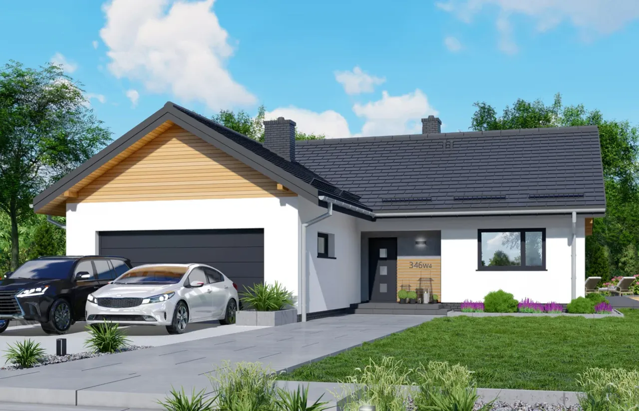 Wypełnij formularz i otrzymaj rysunki w pdf z dokładnymi wymiarami budynku i pomieszczeń (długość, szerokość, wysokość) dla projektu APS 346 wariant 4