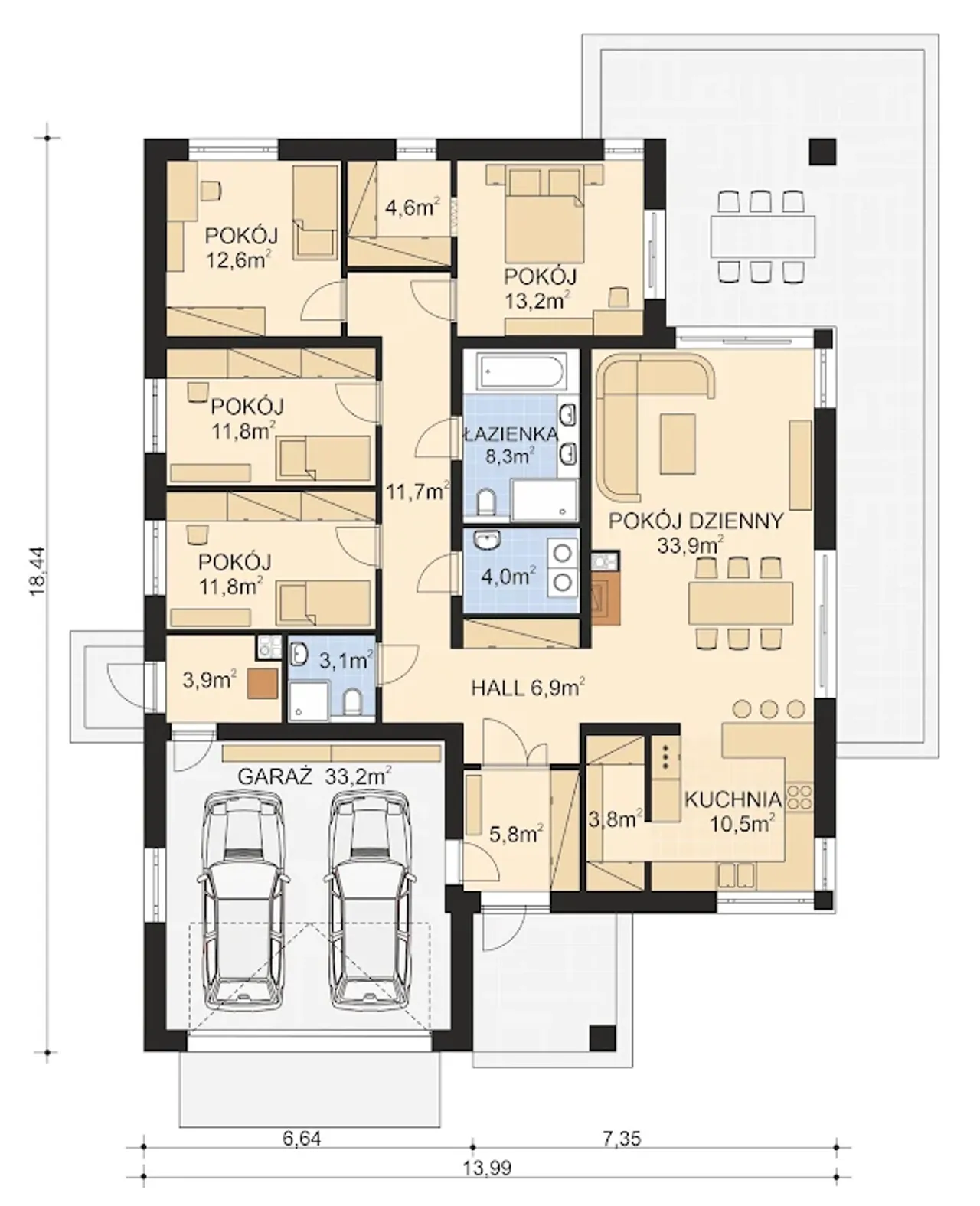 | 4. Salon z jadalnią | 33,90 m² |