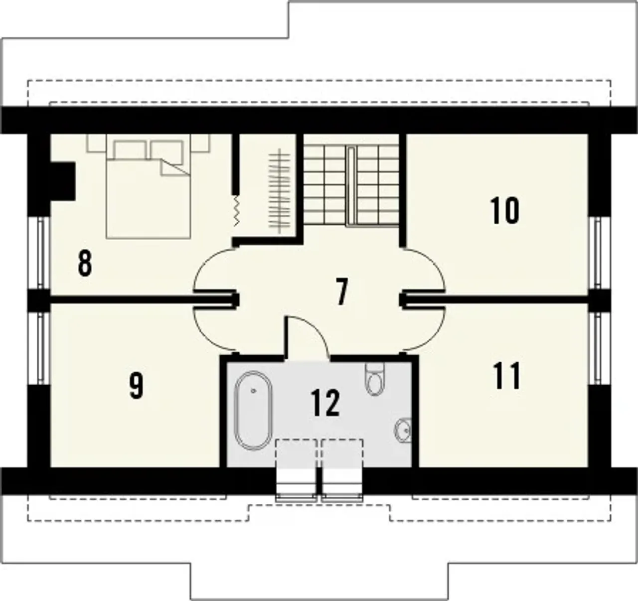 Projekt domu Arabeska wyróżnia się elegancką architekturą oraz ciekawie zaprojektowanym wnętrzem. Jego funkcjonalność sprawia, że jest idealny dla rodziny ceniącej przestrzeń i komfort. Wyróżniającym elementem jest przestronny salon z dużymi oknami, które doświetlają wnętrze, co jest dużym atutem, szczególnie w ciemniejsze miesiące. Kuchnia połączona z jadalnią stwarza idealne warunki do wspólnego spędzania czasu oraz organizowania większych spotkań rodzinnych. Projekt ten doskonale łączy nowoczesność z funkcjonalnością, jest więc doskonałą opcją dla osób poszukujących domu z klasą.