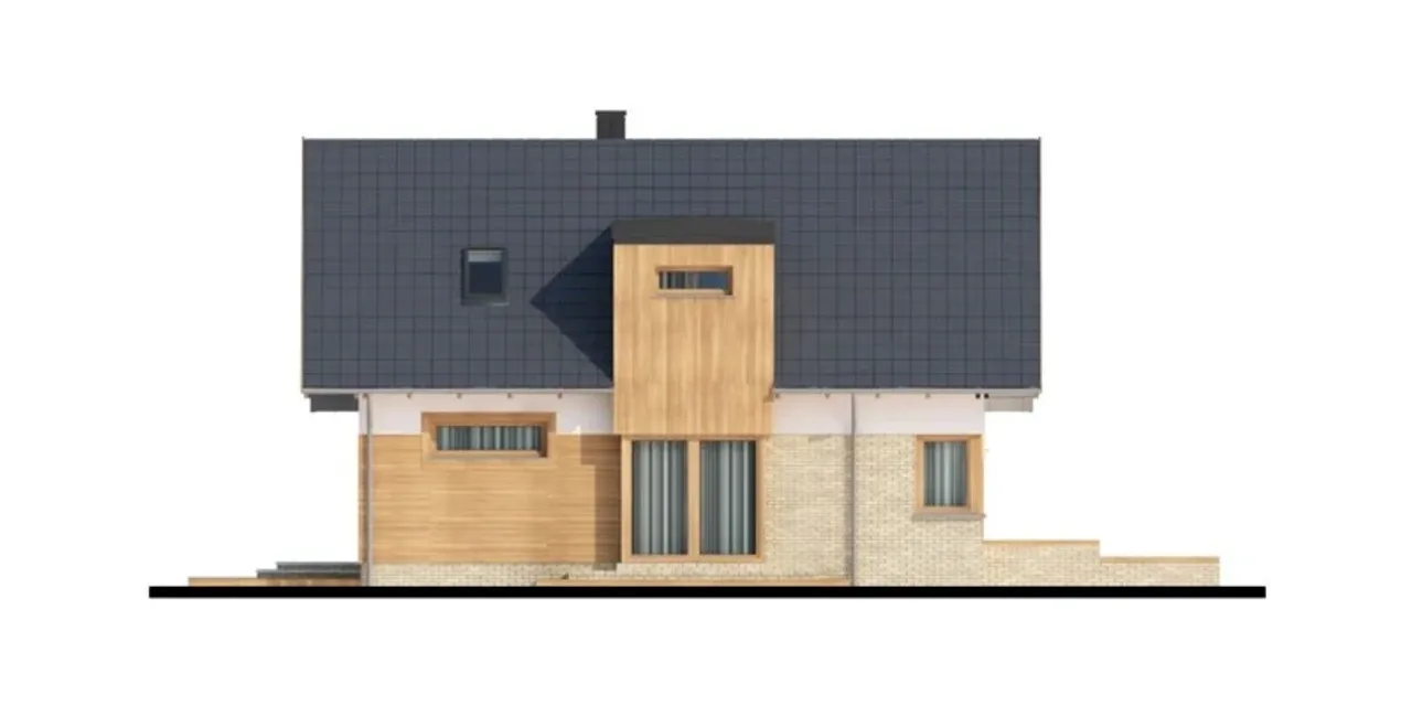 Projektant zastosował bardzo nietypowe rozwiązanie, jeżeli chodzi o lukarny. Zazwyczaj przy dachach dwuspadowych stosuje lukarny jedno-, dwu -, lub czterospadowym. Co prawda nie ma reguły, ale z tymi trzema rodzajami spotkałem się najczęściej.