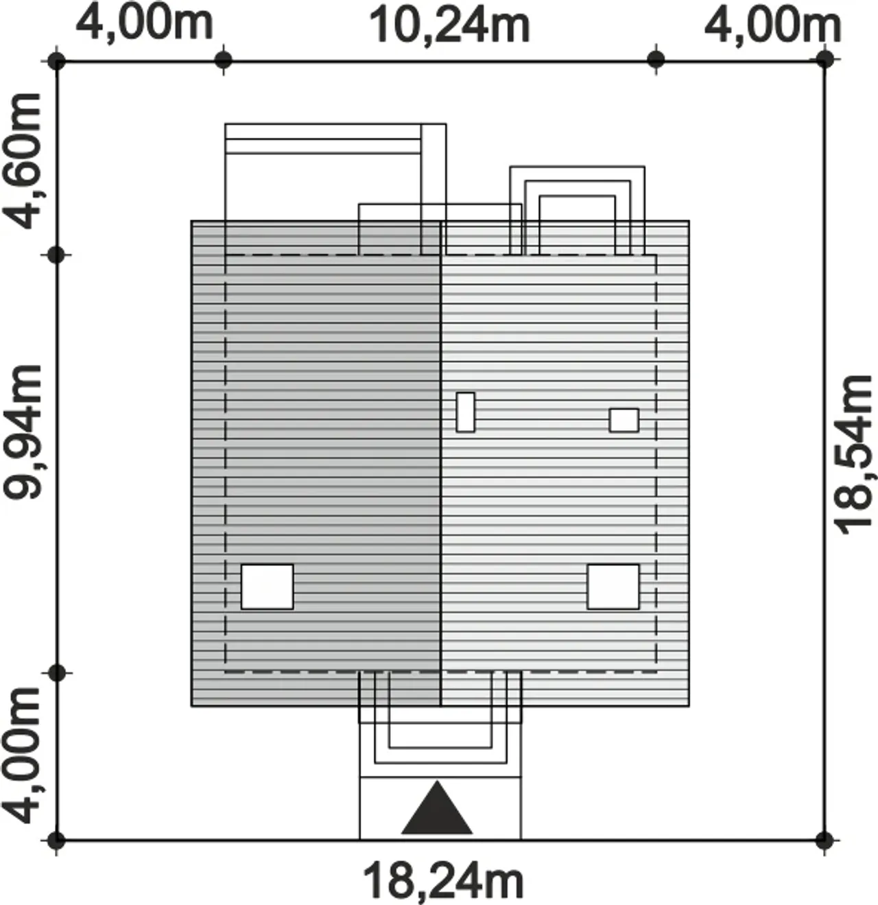 | Szerokość budynku 10.24 m |