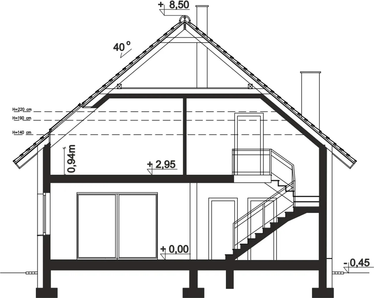 | Kąt nachylenia dachu 40 ° |