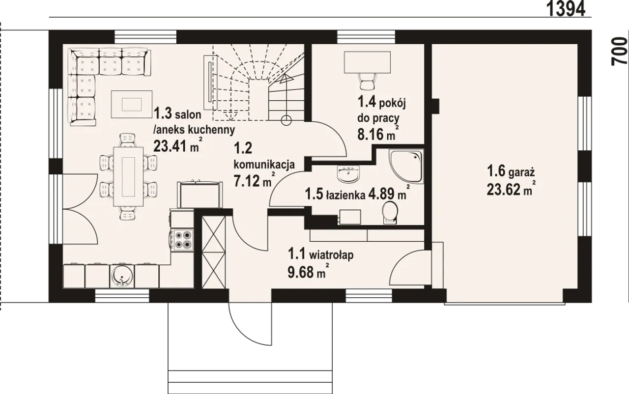 Kupując projekt w technologii murowanej powinieneś budować dom murowany. Zupełna zmiana technologii na szkieletową wymaga przeprojektowania całego budynku ( zmieniają się obciążenia, fundamenty, konstrukcja dachu). Wydamy zgodę na takie przeprojektowanie jednak wiążę się to z dużymi kosztami. Istnieją firmy wykonawcze, które podejmują się zmiany technologii budowy bezpłatnie przy skorzystaniu z ich usług wykonawczych. Zdarza się, że pracownia architektoniczna przygotowuje warianty konkretnego projektu przewidując także inne technologie. Prosimy o sprawdzenie czy istnieje poszukiwana wersja projektu, w zakładce - warianty projektu.