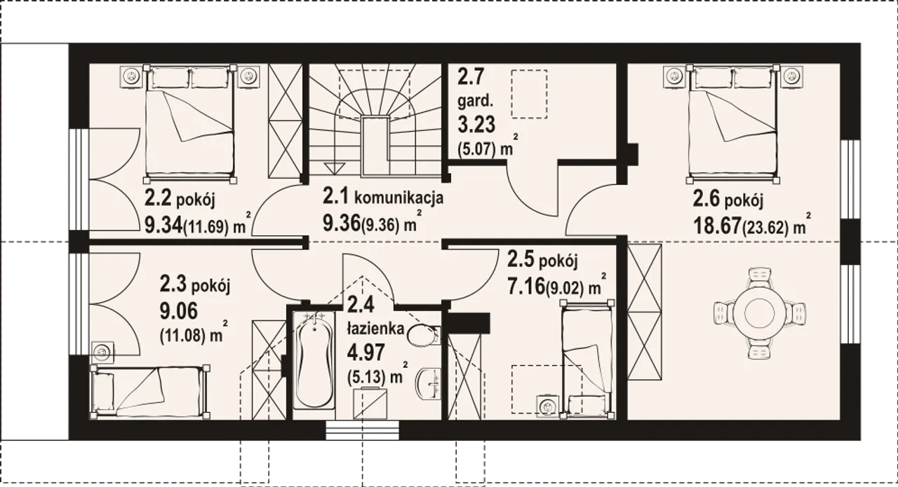 - rzutów kondygnacji użytkowych (parteru i jeśli występują: poddasza, piętra, piwnic)