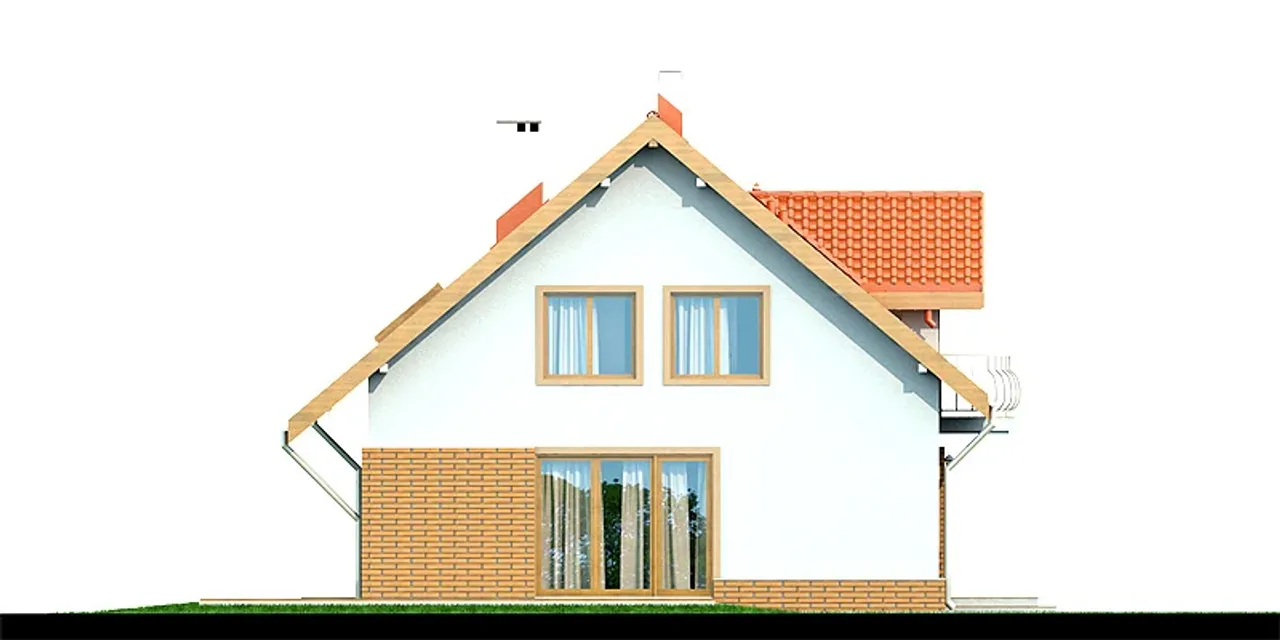 Projekt domu Armanda przedstawia dom z użytkowym poddaszem. Na parterze mieszczą się wiatrołap, przestronny salon z wyjściem na taras połączony z jadalnią, kuchnia ze spiżarnią, dodatkowy pokój lub gabinet, łazienka oraz kotłownia. Poddasze tworzą trzy wygodne sypialnie, strych oraz łazienka. Projekt domu Armanda jest bardzo funkcjonalny.