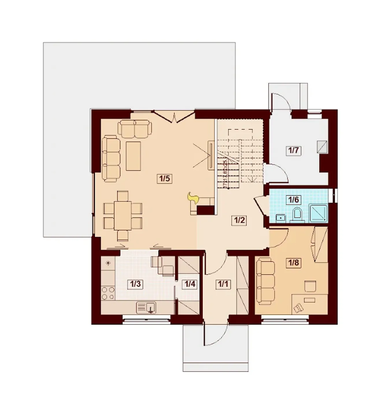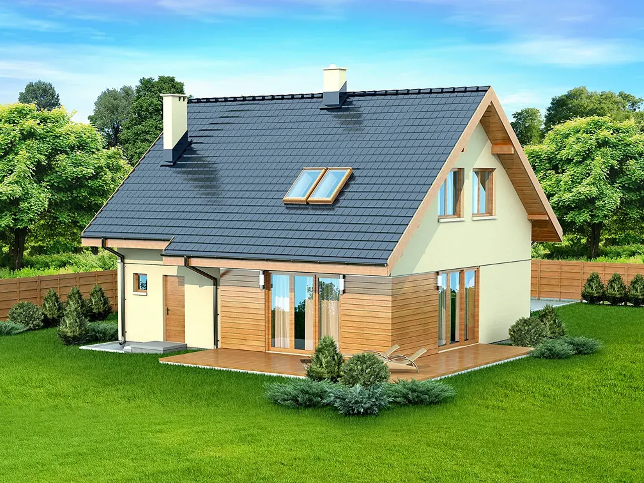 Armanda Mała to funkcjonalny dom o prostej, dokładnie przemyślanej konstrukcji. Projekt przeznaczony dla 3-6 osobowej rodziny, o eleganckiej formie i współczesnej, subtelnej estetyce. Gotowy projekt domu Armanda Mała BIS to budynek parterowy z użytkowym poddaszem. Dom zaprojektowano jako energooszczędny.