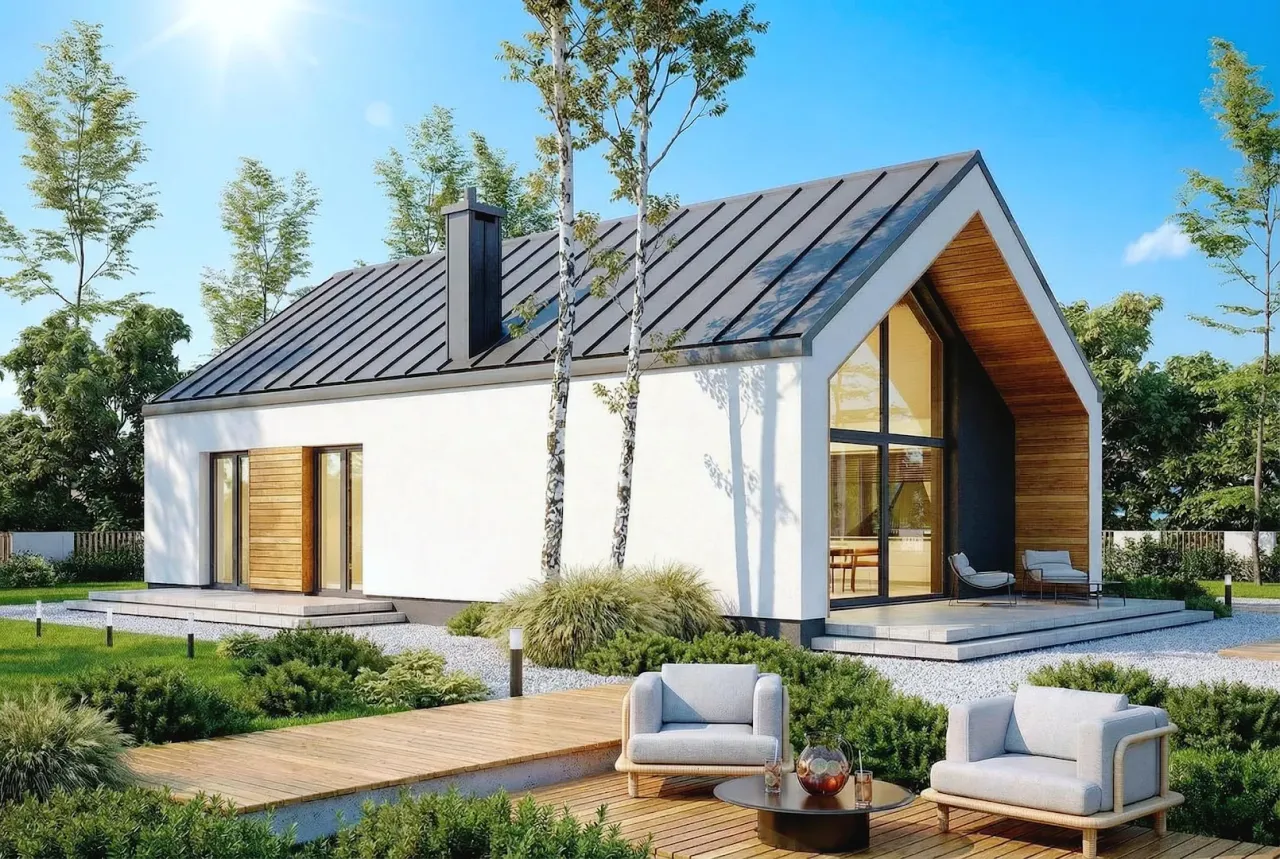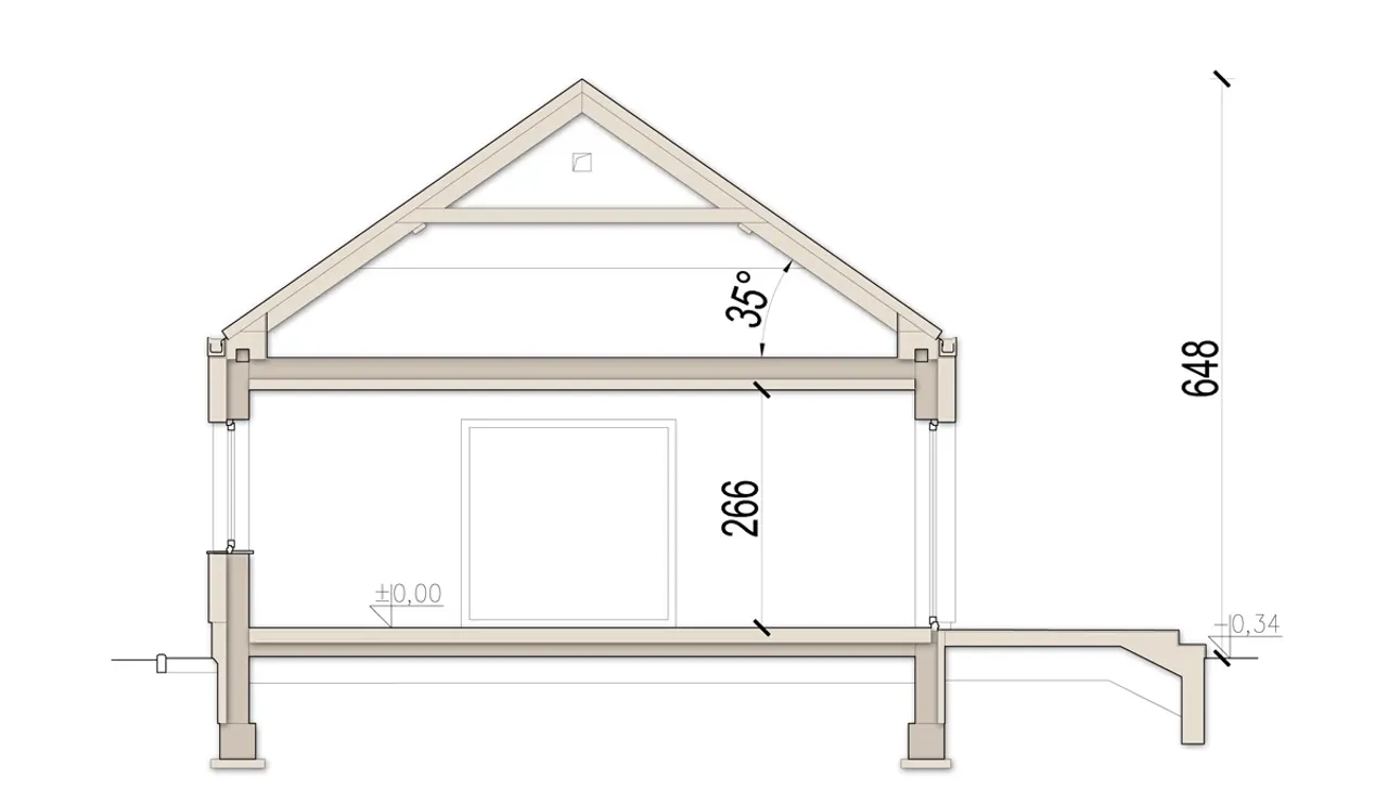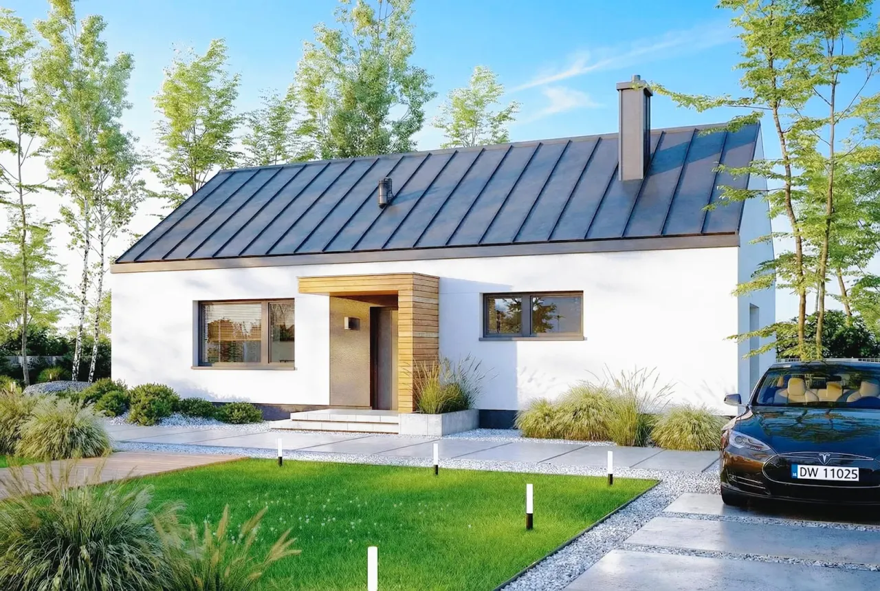 - Pokrycie dachu: dachówką betonową lub ceramiczną.