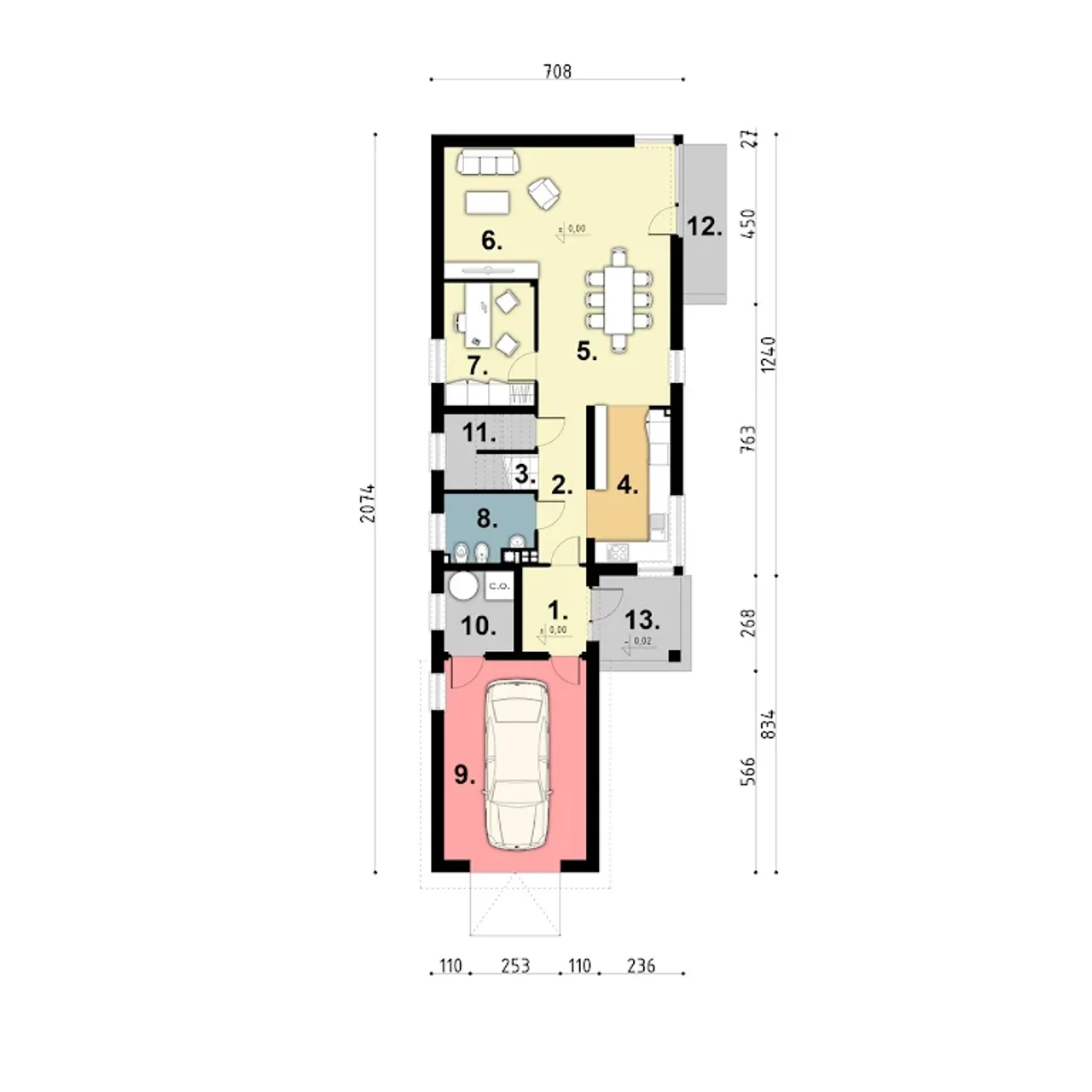 Wypełnij formularz i otrzymaj rysunki w pdf z dokładnymi wymiarami budynku i pomieszczeń (długość, szerokość, wysokość) dla projektu Arnika 2 CE