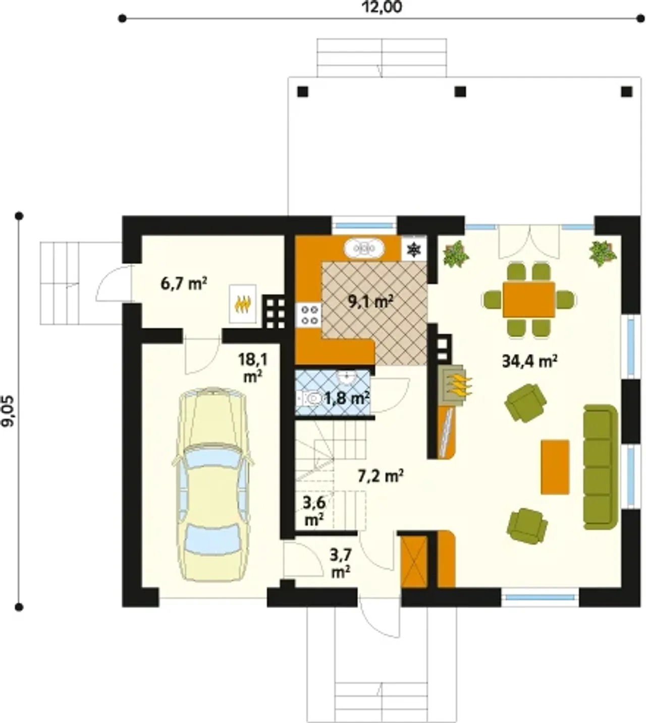 Długość budynku 9.05 m |