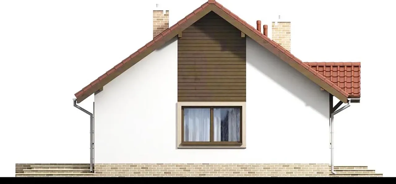Dwuspadowy dach o kącie nachylenia 35 stopni, pokryty elegancką dachówką ceramiczną, czynią bryłę domu ponadczasową i praktyczną. Konstrukcja dachu z naturalnego drewna nadaje wnętrzu przytulny charakter. W salonie znajduje się kominek, który tworzy nastrojowe centrum domu i umożliwia alternatywne ogrzewanie w chłodne wieczory.