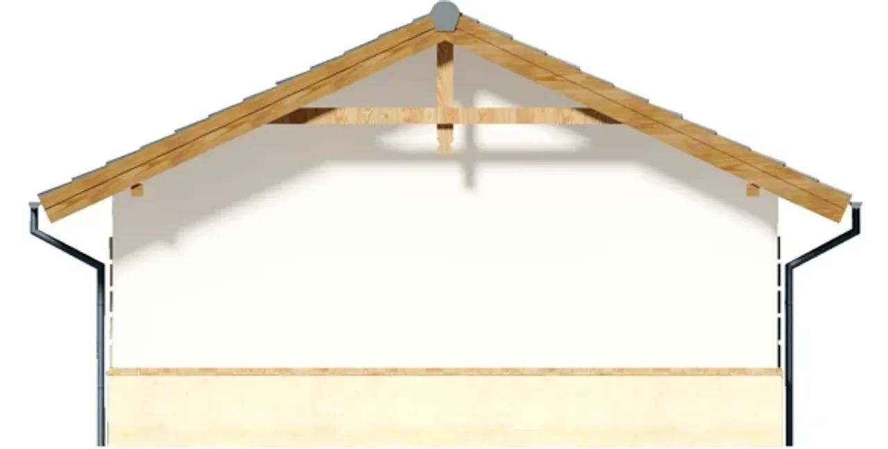 Konstrukcja więźby dachowej oparta na drewnie nadajelekkość bryły oraz łatwość wykończenia wnętrz. Zastosowanie dachówki cementowej jako pokrycia dachu gwarantuje szczelność i trwałość przez wiele lat. Kąt nachylenia dachu 25° pozwala osiągnąć elegancką sylwetkę budynku i optymalną funkcjonalność poddasza gospodarczo. Parterowy rozkład bez barier architektonicznych sprawdzi się znakomicie dla rodzin z dziećmi lub osób starszych. Przemyślane zaplecze gospodarcze pozwala na wygodne przechowywanie sprzętów i niezbędnych narzędzi, podnosząc użyteczność całego domu.