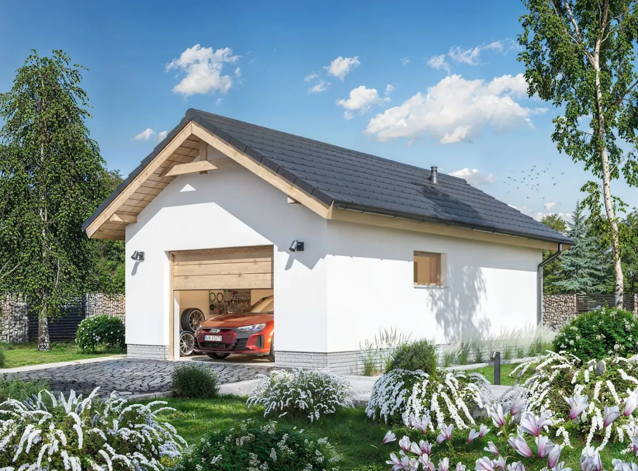 Projekt nadąża za trendami - stawia na energooszczędność i trwałość dzięki przemyślanej strukturze. Charakteryzuje się prostopadłą do drogi kalenicą, praktycznymi pomieszczeniami gospodarczymi i sprawdzonymi technologiami murowanymi.