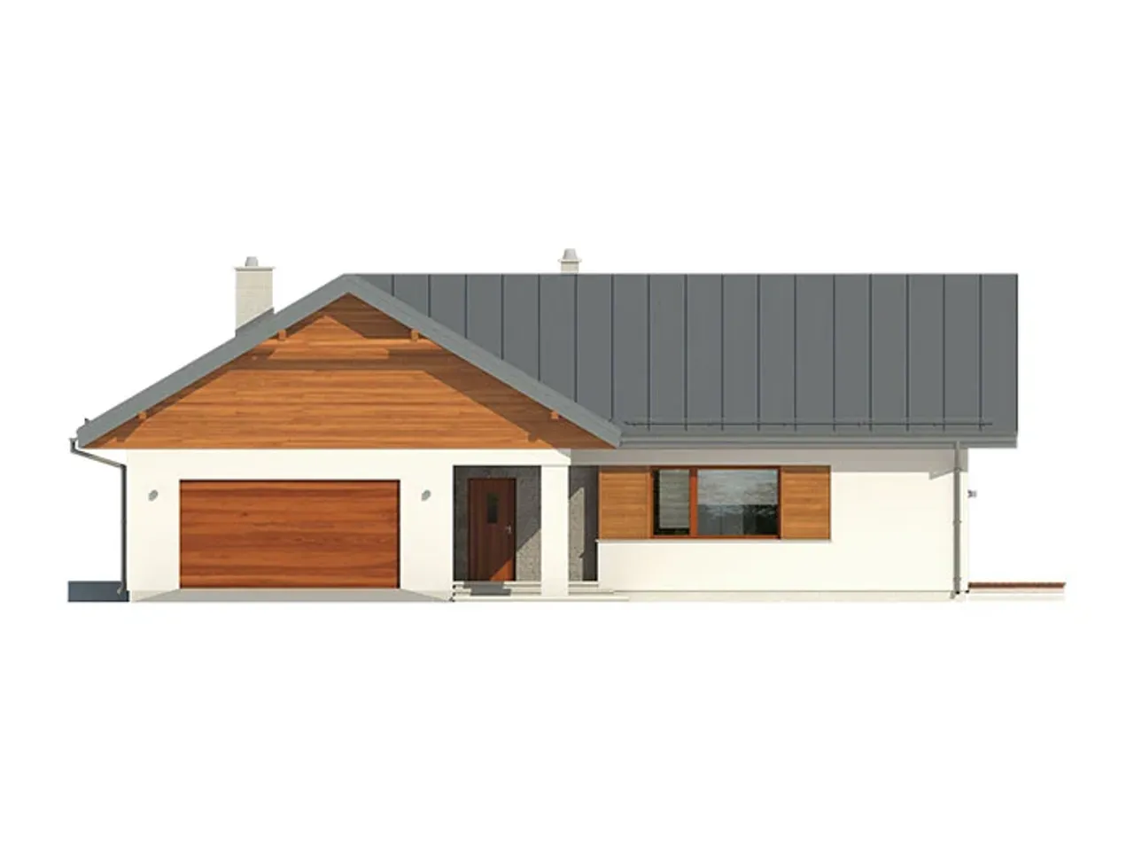 Projekt domu ARTE przedstawia dom parterowy z wbudowanym garażem dwustanowiskowym. Układ domu dzieli się na dwie części: dzienną i nocną. Część dzienną tworzą wiatrołap, przestronny salon z jadalnią, kuchnia ze spiżarnią, kotłownia oraz wc. W części nocnej znajdują się trzy wygodne sypialnie, w tym jedna z własną łazienką i garderobą oraz ogólnodostępna łazienka. Projekt domu ARTE jest wygodny i funkcjonalny.