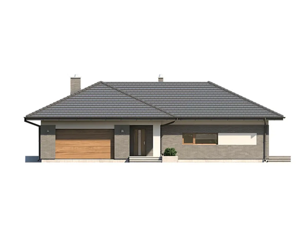 Gotowy projekt domu ARTEO 2 to parterowy dom jednorodzinny. Budynek nie ma podpiwniczenia, przynależy do niego dwustanowiskowy garaż. Jest to idealny dom dla 4 osobowej rodziny, ceniącej komfort użytkowania domów. Wnętrze domu ARTEO 2 zostało podzielone na otwartą cześć dzienną, wygodną strefę prywatną oraz optymalną część gospodarczą. Część dzienna to przestronny salon połączony z jadalnią, otwierający się na ogród poprzez ogromne przeszklenia, kuchnia ze spiżarnią oraz wc. Część nocna to 3 sypialnie oraz łazienka. Z garażu, dostępna jest duża kotłownia, której parametry pozwalają na montaż kotła na każdy rodzaj paliwa, także na paliwo stałe. Ten optymalny i ciekawy program funkcjonalny został ujęty w prostej bryle na rzucie litery T, przykrytej wielospadowym dachem.