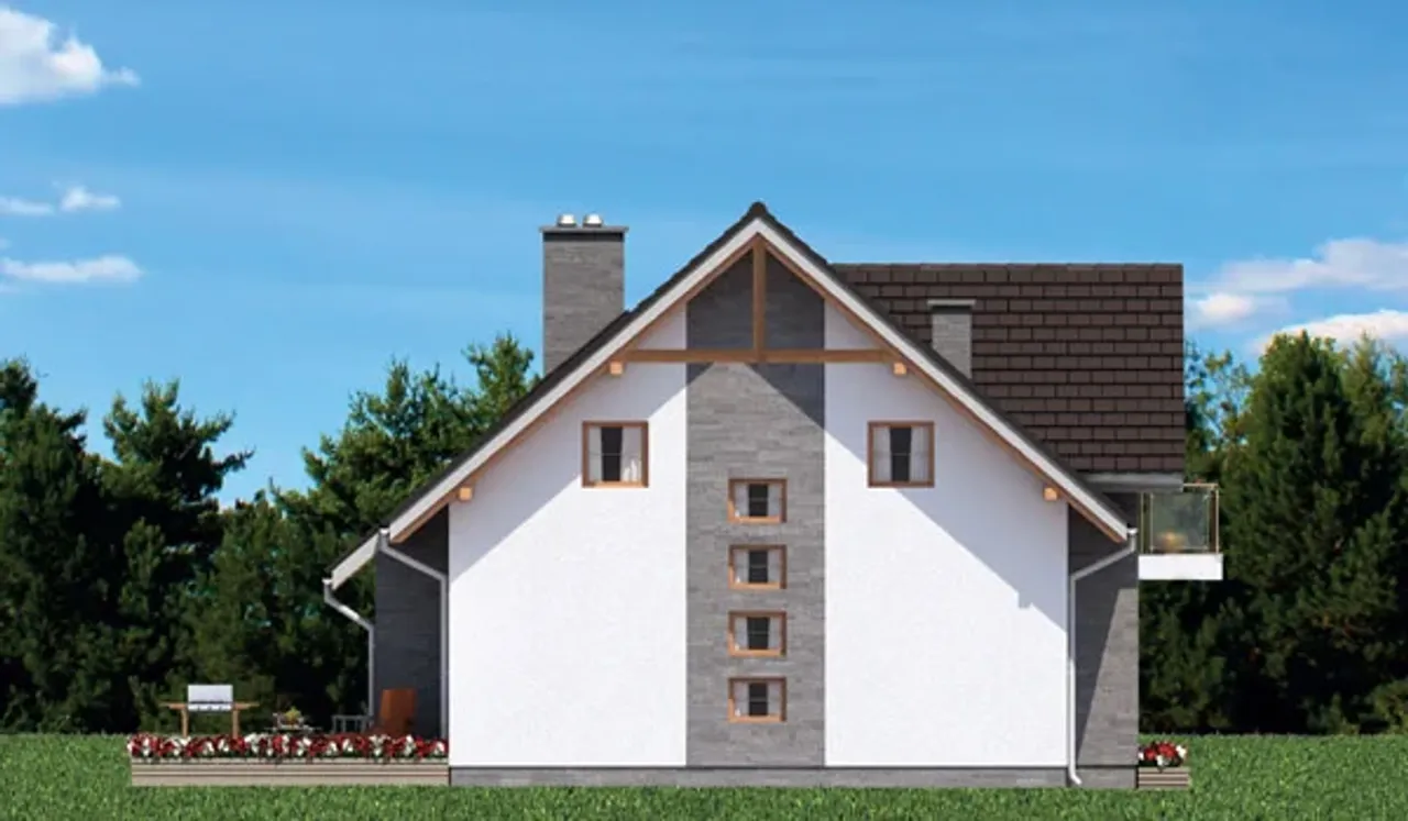 Kupując projekt w technologii murowanej powinieneś budować dom murowany. Zupełna zmiana technologii na szkieletową wymaga przeprojektowania całego budynku ( zmieniają się obciążenia, fundamenty, konstrukcja dachu). Wydamy zgodę na takie przeprojektowanie jednak wiążę się to z dużymi kosztami. Istnieją firmy wykonawcze, które podejmują się zmiany technologii budowy bezpłatnie przy skorzystaniu z ich usług wykonawczych. Zdarza się, że pracownia architektoniczna przygotowuje warianty konkretnego projektu przewidując także inne technologie. Prosimy o sprawdzenie czy istnieje poszukiwana wersja projektu, w zakładce - warianty projektu.