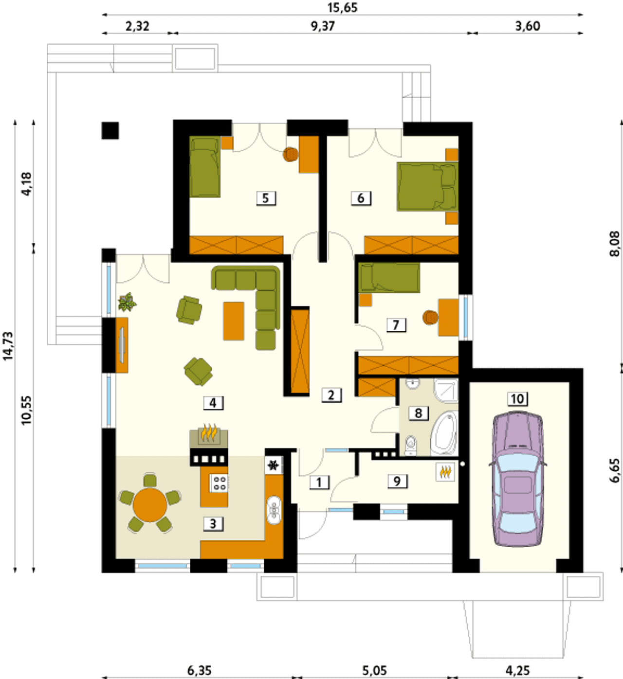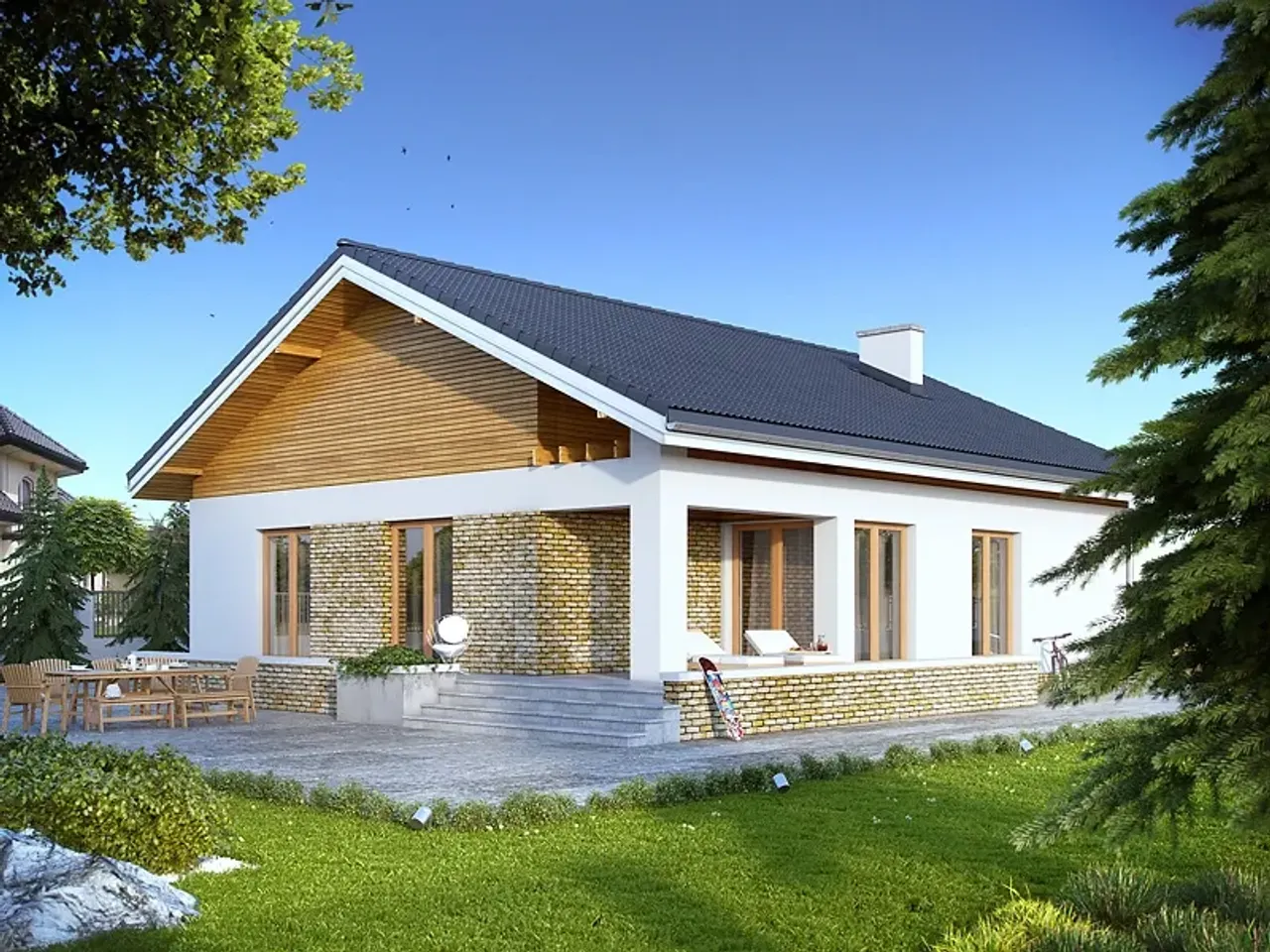 Bardzo podoba mi się styl wykonania Projektu As 3. Chodzi mi zarówno o kształt zewnętrzny (wnęki i taras) oraz o elementy kamienne i drewniane, które dają ciekawy efekt na elewacji zewnętrznej. dzięki temu dom o względnie prostej bryle, wygląda bardzo interesująco. Inne aspekty, które zadecydowały o wyborze tego projektu, to energooszczędność i to, że jest on parterowy.