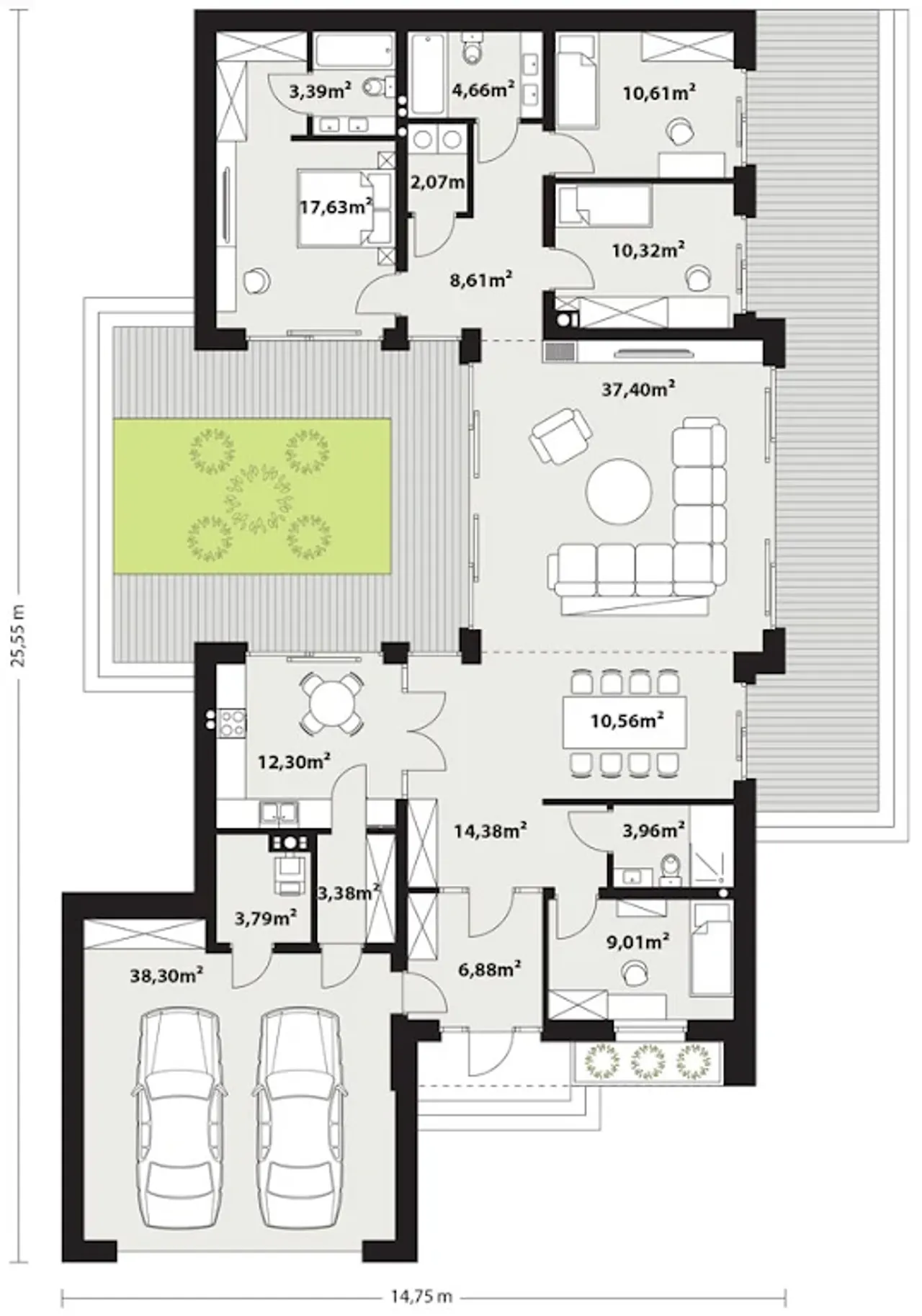 Wypełnij formularz i otrzymaj na podany adres e-mail rysunki w pdf z dokładnymi wymiarami budynku i pomieszczeń (długość, szerokość, wysokość) dla projektu Astina 2