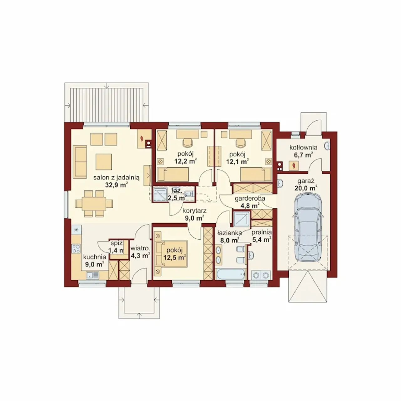Wypełnij formularz i otrzymaj rysunki w pdf z dokładnymi wymiarami budynku i pomieszczeń (długość, szerokość, wysokość) dla projektu Atlant 1 A