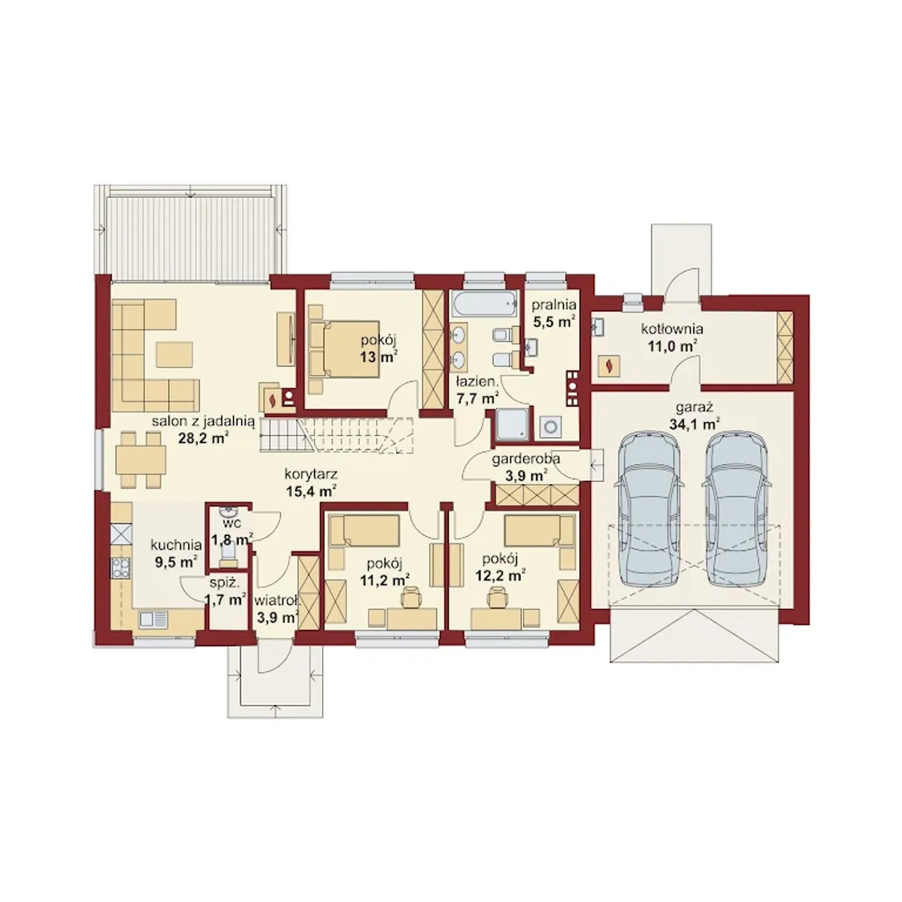 Wypełnij formularz i otrzymaj rysunki w pdf z dokładnymi wymiarami budynku i pomieszczeń (długość, szerokość, wysokość) dla projektu Atlant 2 PS