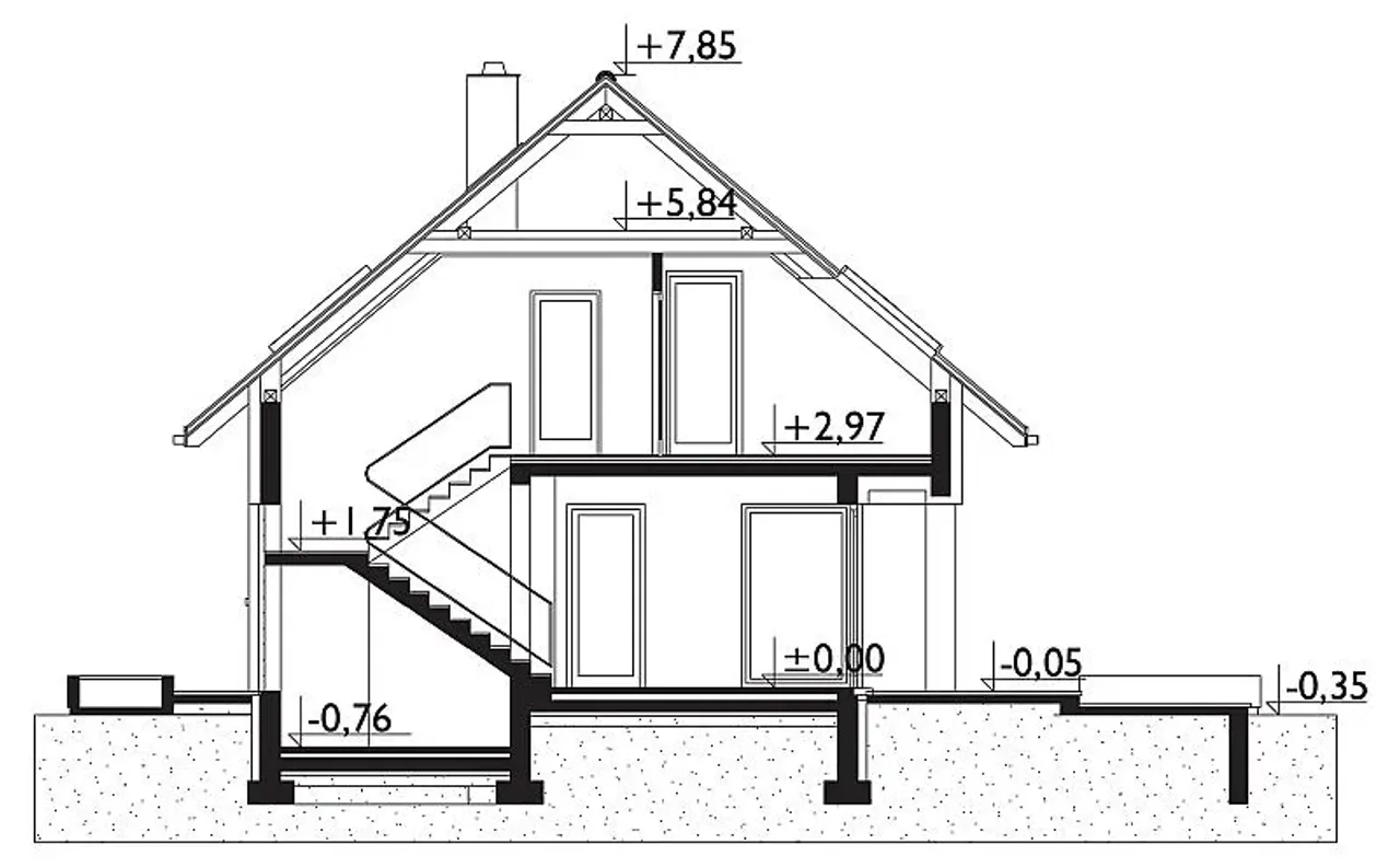 - przekroje - pokazują wszystkie elementy budynku po przecięciu go wzdłuż lub w poprzek od dachu do fundamentów tj. warstwy podłogi, stropów i dachu