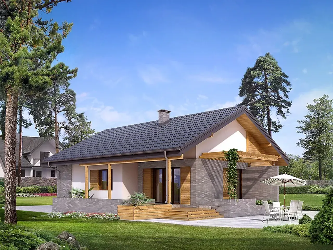 Kupując projekt w technologii murowanej powinieneś budować dom murowany. Zupełna zmiana technologii na szkieletową wymaga przeprojektowania całego budynku ( zmieniają się obciążenia, fundamenty, konstrukcja dachu). Wydamy zgodę na takie przeprojektowanie jednak wiążę się to z dużymi kosztami. Istnieją firmy wykonawcze, które podejmują się zmiany technologii budowy bezpłatnie przy skorzystaniu z ich usług wykonawczych. Zdarza się, że pracownia architektoniczna przygotowuje warianty konkretnego projektu przewidując także inne technologie. Prosimy o sprawdzenie czy istnieje poszukiwana wersja projektu, w zakładce - warianty projektu.