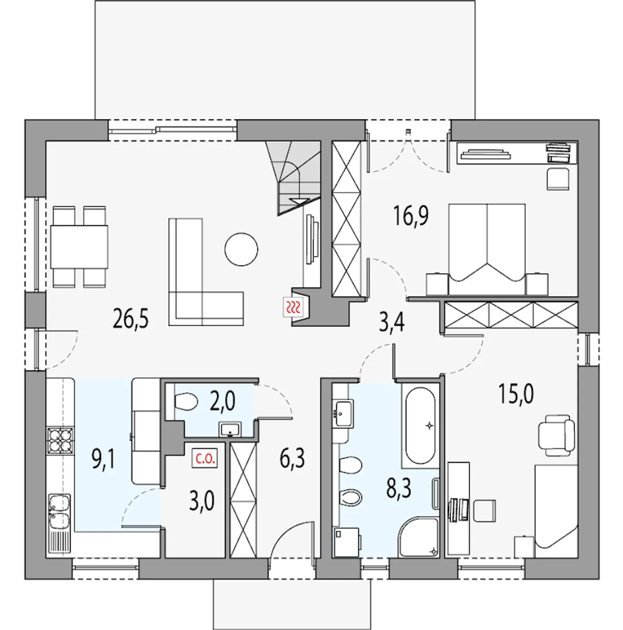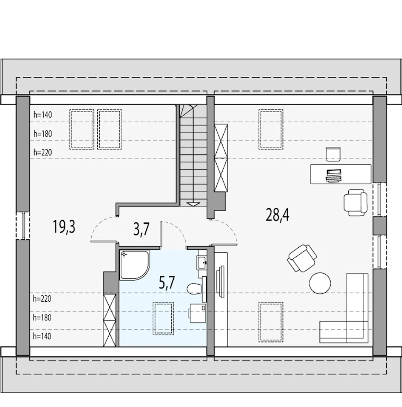 Wypełnij formularz i otrzymaj rysunki w pdf z dokładnymi wymiarami budynku i pomieszczeń (długość, szerokość, wysokość) dla projektu Aurelia B