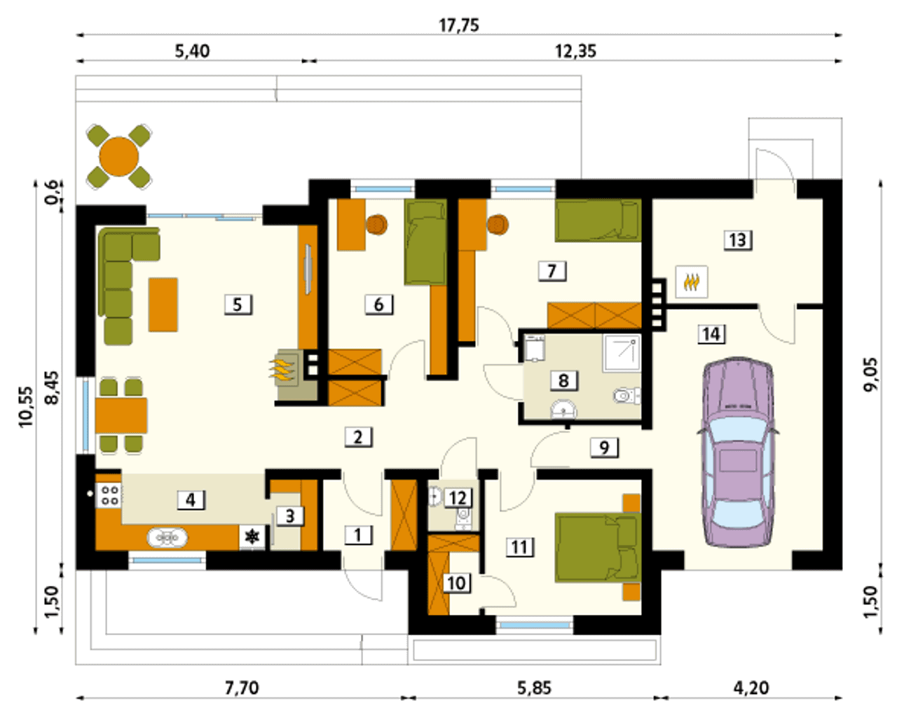 Wypełnij formularz i otrzymaj rysunki w pdf z dokładnymi wymiarami budynku i pomieszczeń (długość, szerokość, wysokość) dla projektu Aurelia