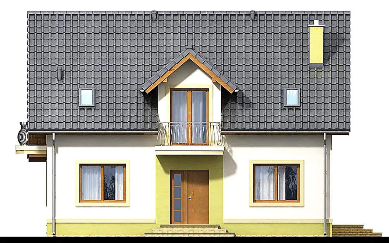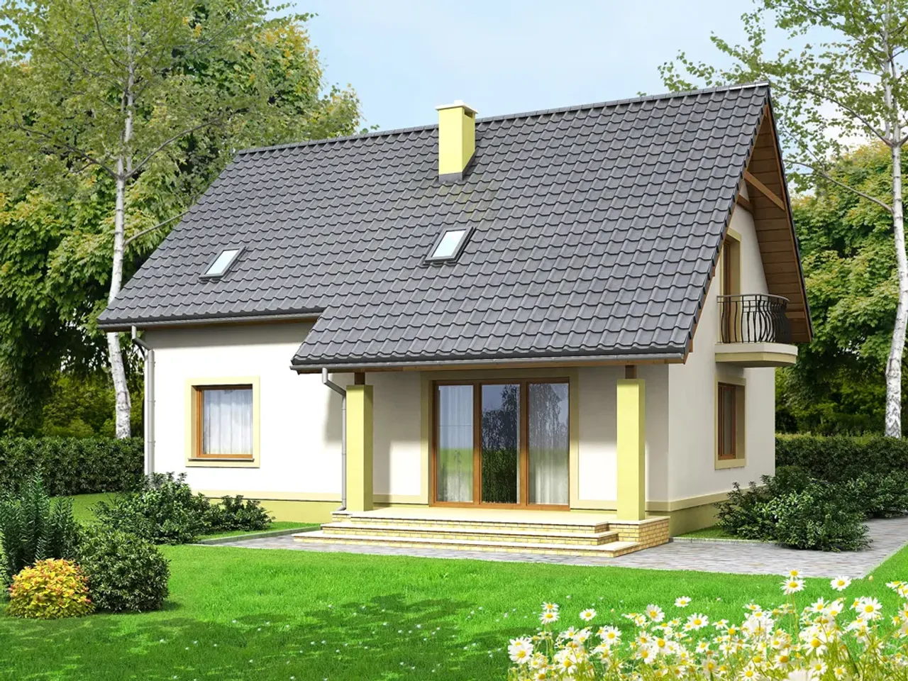 Projekt domu jednorodzinnego całorocznego został zaplanowany z myślą o rodzinach ceniących komfort i elastyczność rozwiązań architektonicznych. Odpowiednio wyważona bryła z dachem dwuspadowym o kącie nachylenia 40° oraz drewniana konstrukcja zapewniają zarówno solidność, jak i tradycyjny wygląd. Kalenica równoległa do drogi pozwala korzystnie usytuować budynek względem działki. Wewnętrzny rozkład to pięć wygodnych pokoi, dzięki którym każdy domownik znajdzie swoją strefę prywatności.
