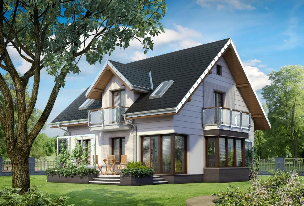 - elewacje - pokazują dokładny wygląd domu od frontu, z tyłu i z boków