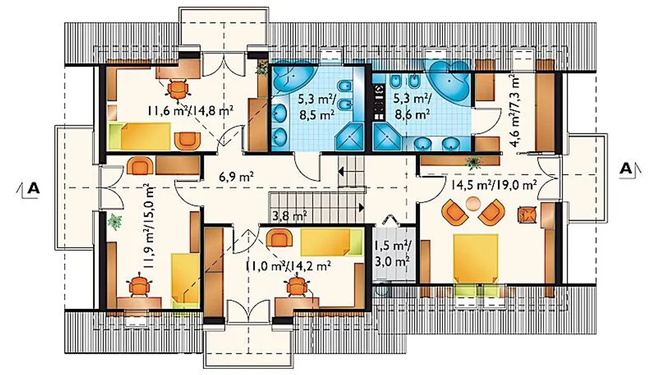 - elewacje - pokazują dokładny wygląd domu od frontu, z tyłu i z boków