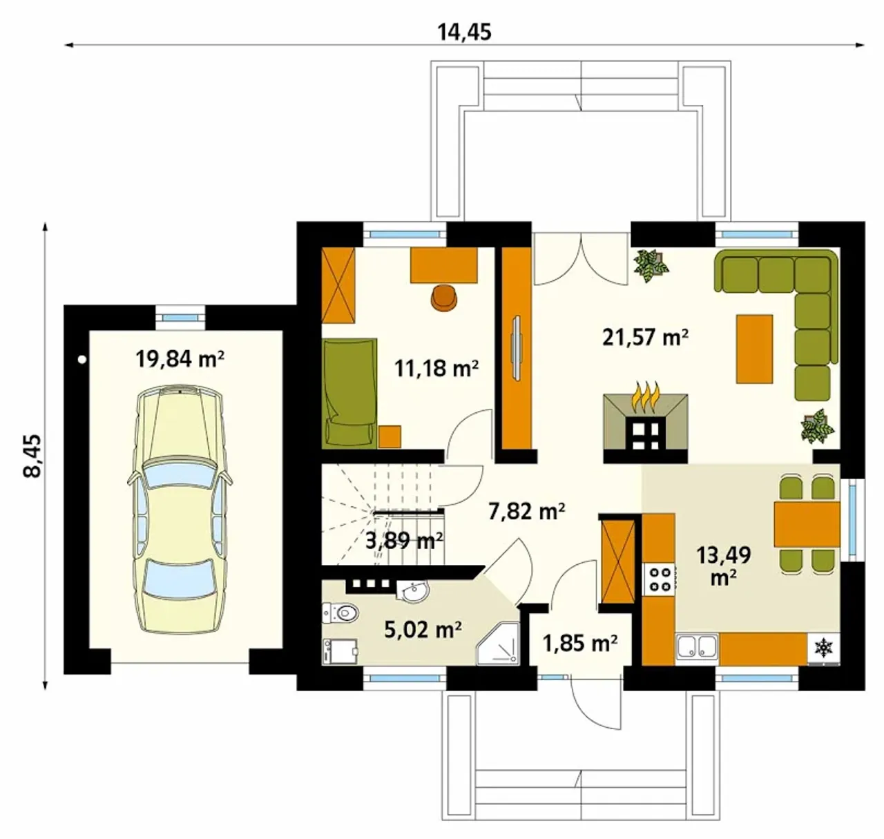 Szerokość budynku 14.45 m |
