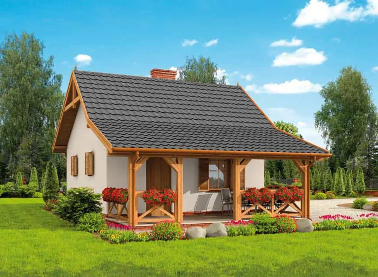 Wypełnij formularz i otrzymaj rysunki w pdf z dokładnymi wymiarami budynku i pomieszczeń (długość, szerokość, wysokość) dla projektu BAHIA szkielet drewniany, dom letniskowy