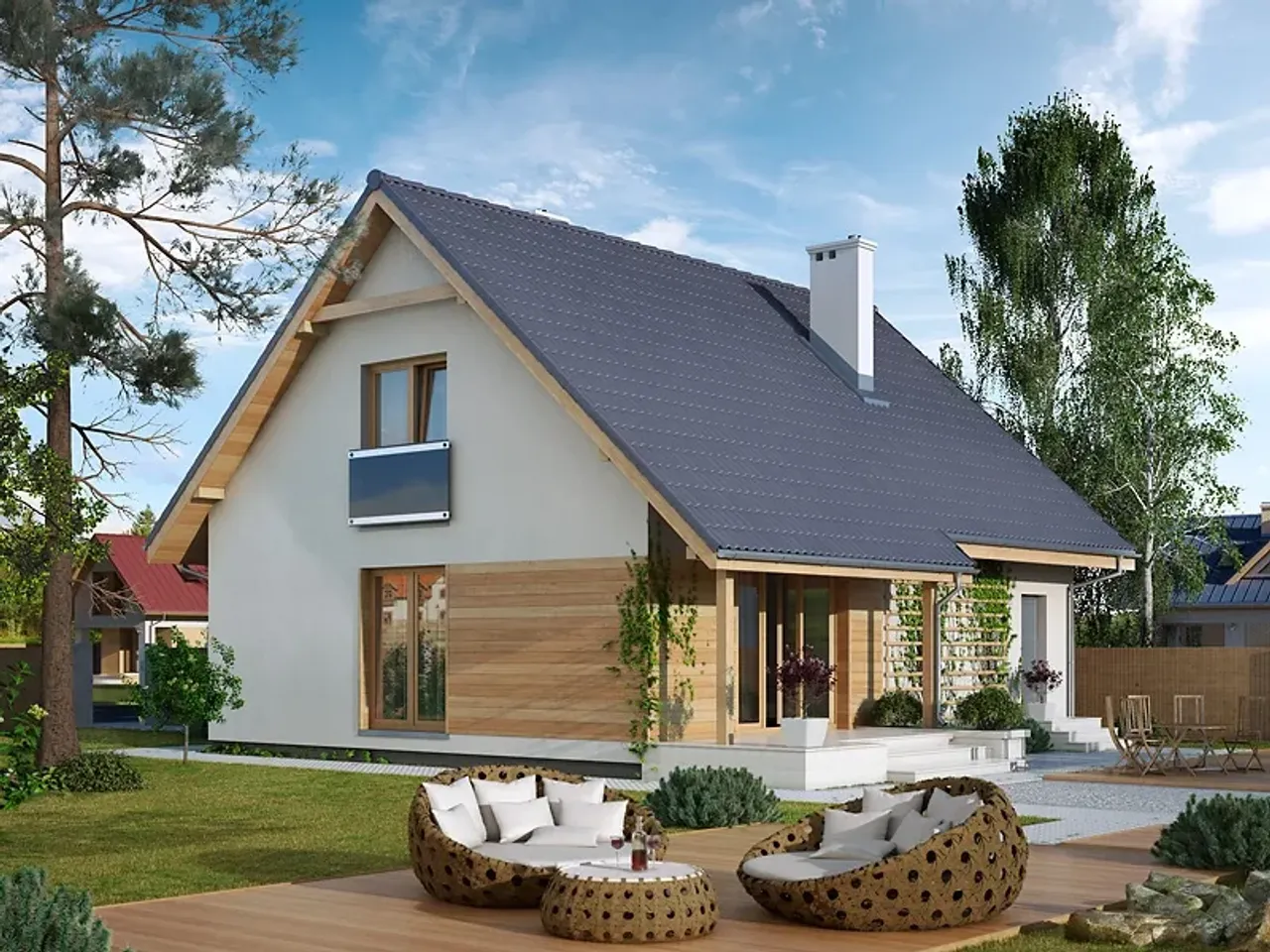 Gotowy projekt domu Balbinka 2 (KO) to dom murowany, z garażem jednostanowiskowym. Decydując sie na projekt Balbinka 2 (KO) przyszli inwestorzy zamieszkają w budynku parterowym z poddaszem użytkowym. Konstrukcję domu wieńczy dach dwuspadowy, a całość utrzymana jest w tradycyjnej stylistyce. Gotowy projekt domu Balbinka 2 (KO) będzie domem w zabudowie całorocznej, bez podpiwniczenia, w którym przewidziano instalację kominkową oraz zamkniętą kuchnię. Projekt charakteryzuje połaczenie tradycyjności z nowoczesnością dzięki prostej bryle i wspólczesnym rozwiązaniom wykorzystanym przy projektowaniu rozkładu pomieszczeń wewnątrz budynku. Ważnymi elementami wykorzystanymi w projekcie jest elegancki wygląd zewnętrzny, proporcjonalna bryła, funkcjonalne rozmieszczenie pomieszczeń wewnątrz budynku oraz dbałość o odpowiednie doświetlenie pomieszczeń. Projekt charakteryzuje elegancka forma i tradycyjna estetyka. .
