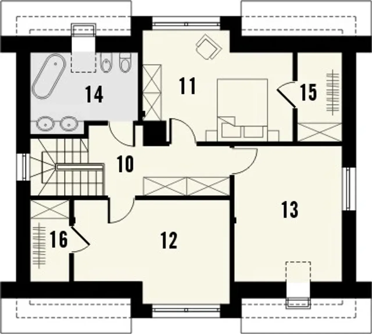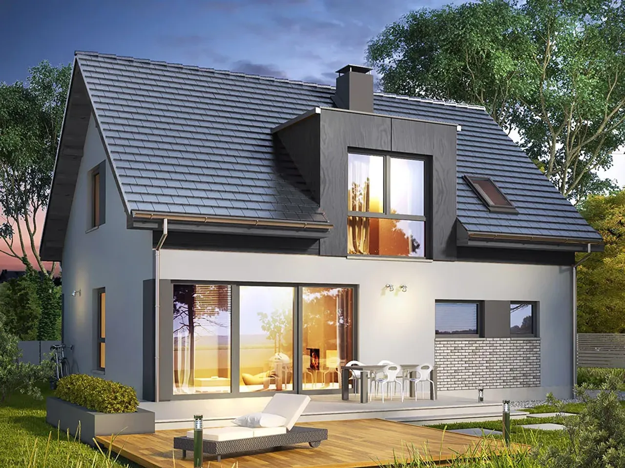 Projekt Baleary to propozycja idealna dla poszukujących nowoczesnego domu z unikalnym designem. Charakteryzuje się przemyślanym rozkładem pomieszczeń, co ułatwia codzienne funkcjonowanie. Duże okna zapewniają jasność wnętrz i ładne widoki na otoczenie. Prosta bryła budynku świetnie wpisuje się w aktualne trendy architektoniczne. Istotną zaletą projektu jest praktyczne wykorzystanie przestrzeni, co czyni dom funkcjonalnym dla rodzin.