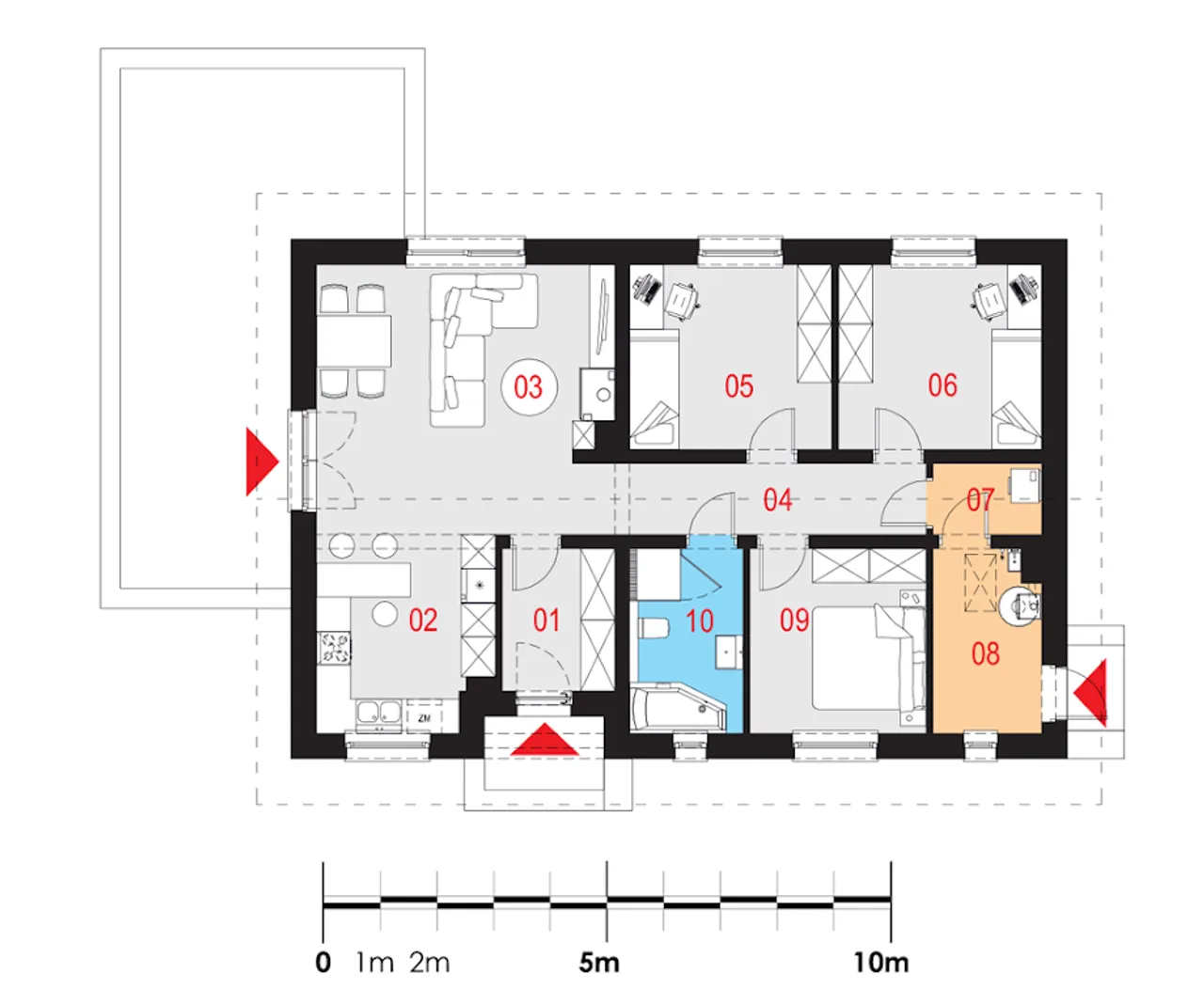 Kupując projekt w technologii murowanej powinieneś budować dom murowany. Zupełna zmiana technologii na szkieletową wymaga przeprojektowania całego budynku ( zmieniają się obciążenia, fundamenty, konstrukcja dachu). Wydamy zgodę na takie przeprojektowanie jednak wiążę się to z dużymi kosztami. Istnieją firmy wykonawcze, które podejmują się zmiany technologii budowy bezpłatnie przy skorzystaniu z ich usług wykonawczych. Zdarza się, że pracownia architektoniczna przygotowuje warianty konkretnego projektu przewidując także inne technologie. Prosimy o sprawdzenie czy istnieje poszukiwana wersja projektu, w zakładce - warianty projektu.