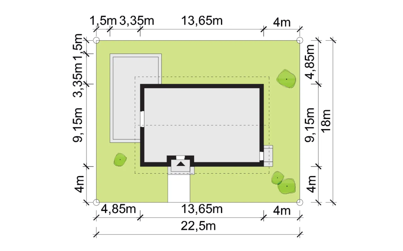 Wypełnij formularz i otrzymaj rysunki w pdf z dokładnymi wymiarami budynku i pomieszczeń (długość, szerokość, wysokość) dla projektu Basicus I