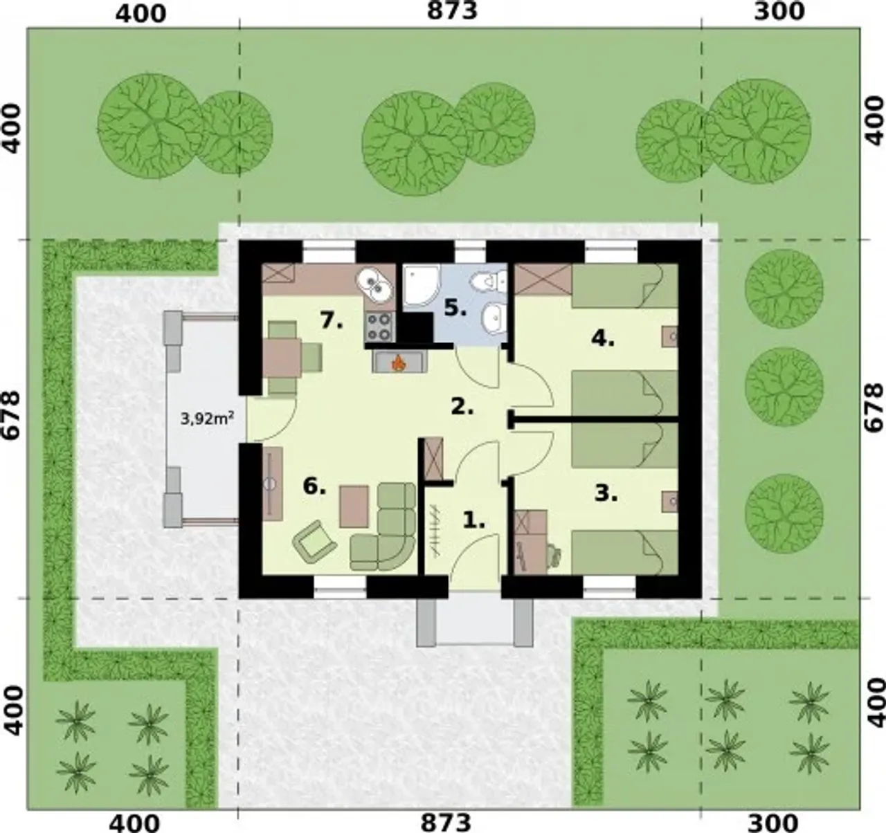 Wypełnij formularz i otrzymaj rysunki w pdf z dokładnymi wymiarami budynku i pomieszczeń (długość, szerokość, wysokość) dla projektu Bayamo C Dom Mieszkalny