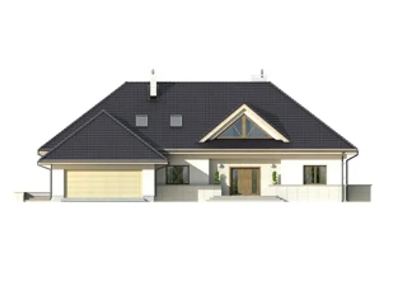 Gotowy projekt domu jednorodzinnego Bazalt (SI) przedstawia budynek parterowy z poddaszem użytkowym, zaprojektowany w technologii murowanej. Dom będzie przykryty dachem wielospadowym o kącie nachylenia 38 stopni/e. W domu na podstawie projektu Bazalt (SI) możliwe jest zastosowanie ogrzewania gazowego, i dogrzewanie domu kominkiem. W projekcie znajduje się garaż na dwa auta. Z przedstawionego projektu powstanie budynek niepodpiwniczony. Bazalt (SI) będzie domem charakteryzującym się nowoczesnym stylem wykończenia.