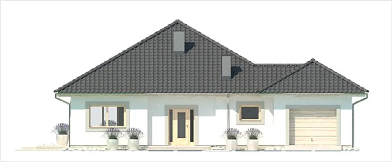 Wypełnij formularz i otrzymaj rysunki w pdf z dokładnymi wymiarami budynku i pomieszczeń (długość, szerokość, wysokość) dla projektu Bella wersja B z pojedynczym garażem