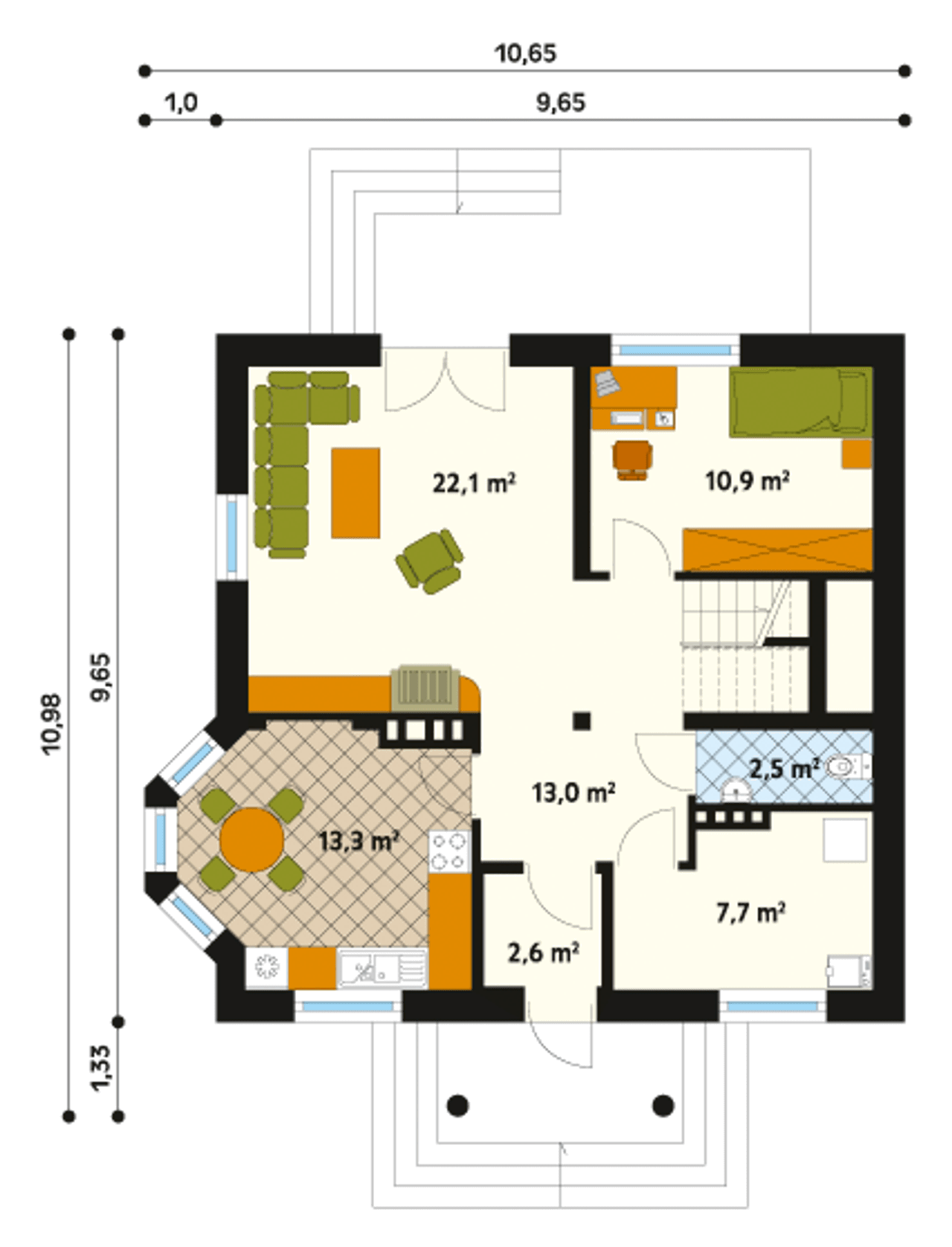 Szerokość budynku 10.65 m |