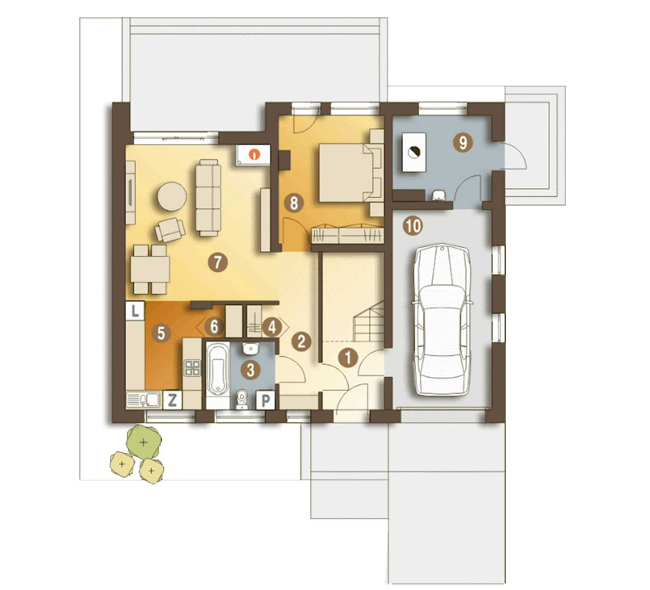 Wypełnij formularz i otrzymaj rysunki w pdf z dokładnymi wymiarami budynku i pomieszczeń (długość, szerokość, wysokość) dla projektu Bernikla z garazem 1-st. A