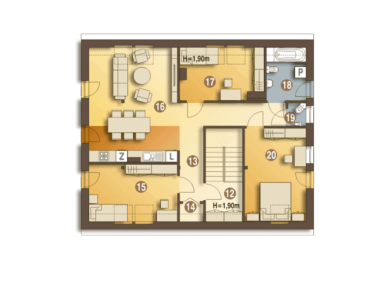 5. Salon+kuchnia | 25,30 (26,80) m² |